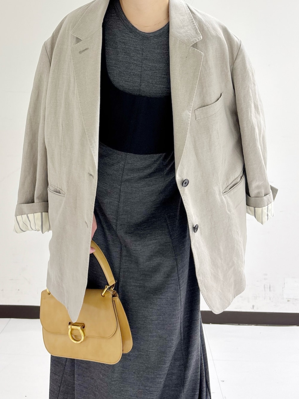 体のラインを拾い過ぎずにスッキリと見せてくれるデザインで1枚で着てもサマになりますよ🙆♀️