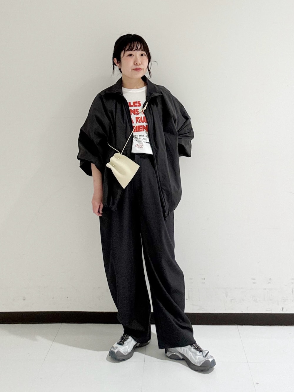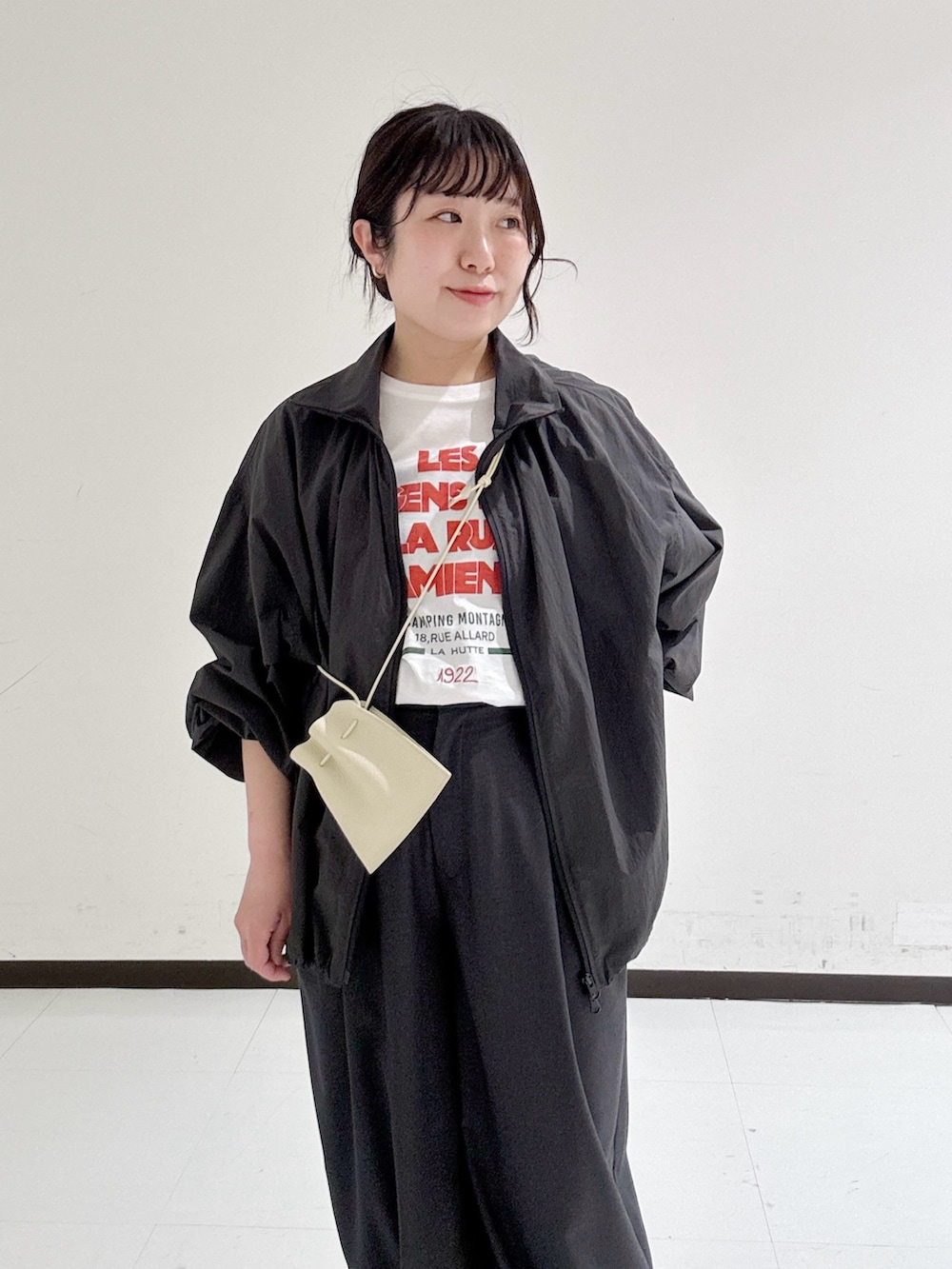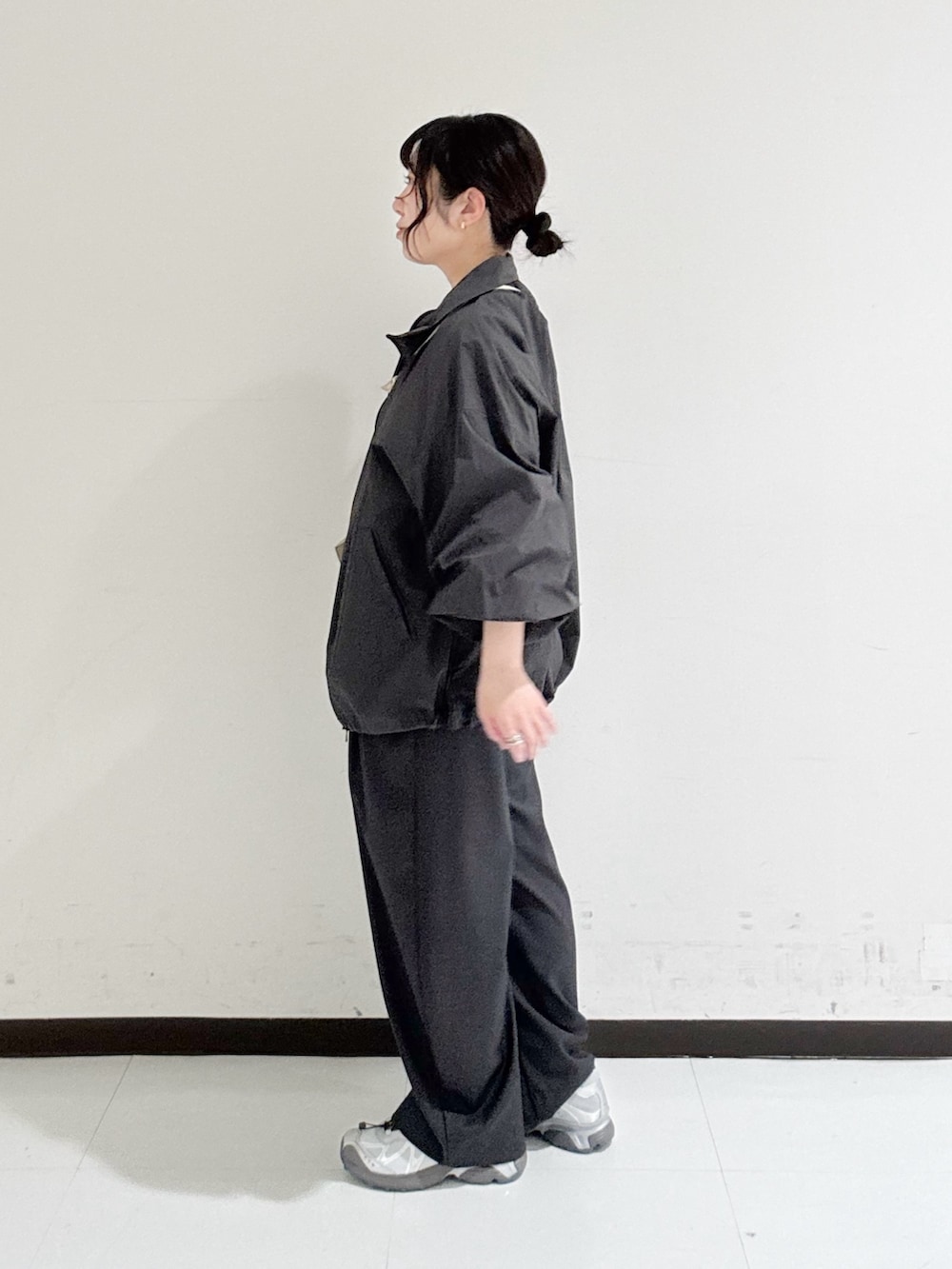 スポーティーなアイテムはとろみのあるインナーやボトムと合わせてカジュアルになりすぎないスタイルが好みです。