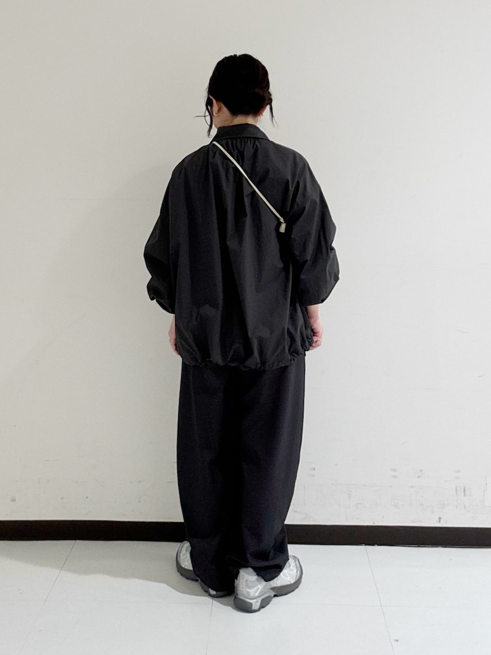 裾を絞って丸みのあるシルエットで着るのがこなれ感が出てオススメです◎