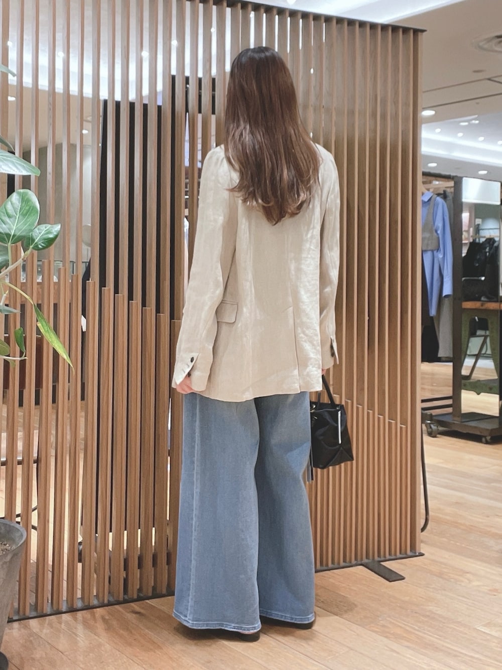 きちんと感のあるテーラードデザインですが、リネン素材の程よい抜け感できれいめカジュアルな印象に。