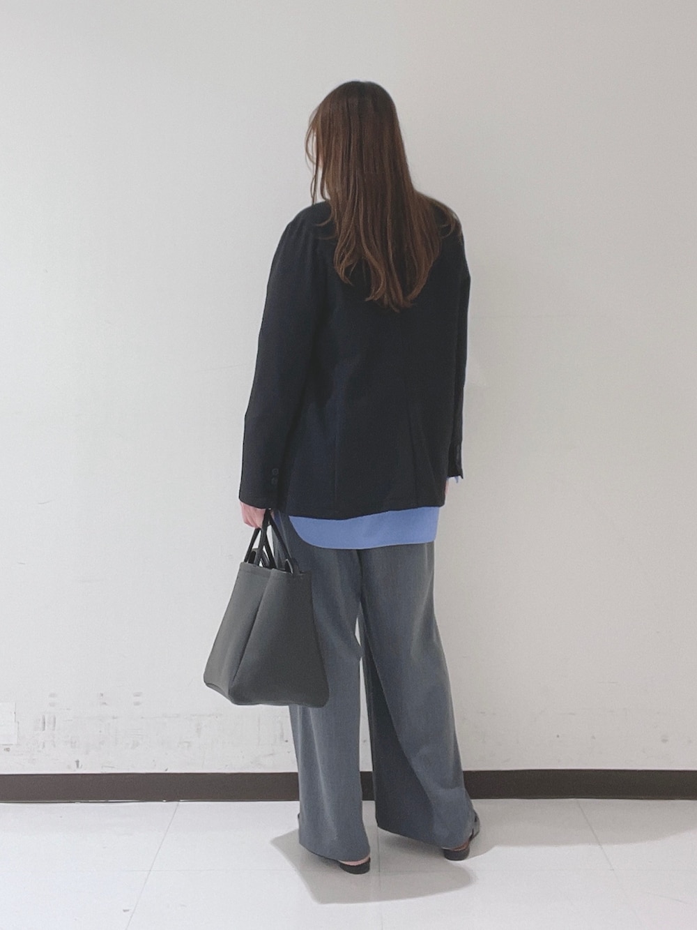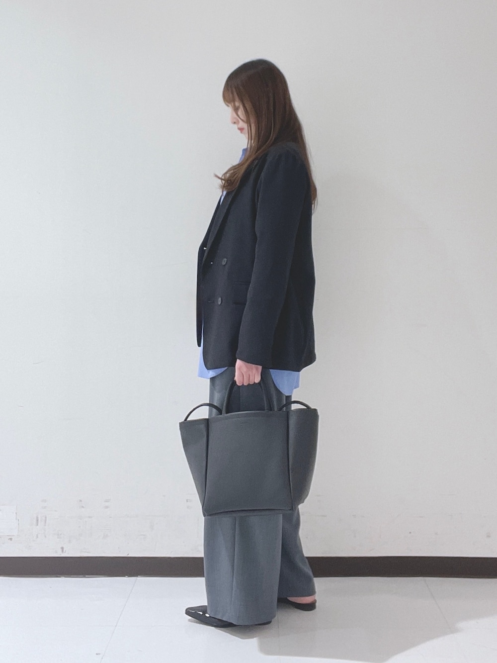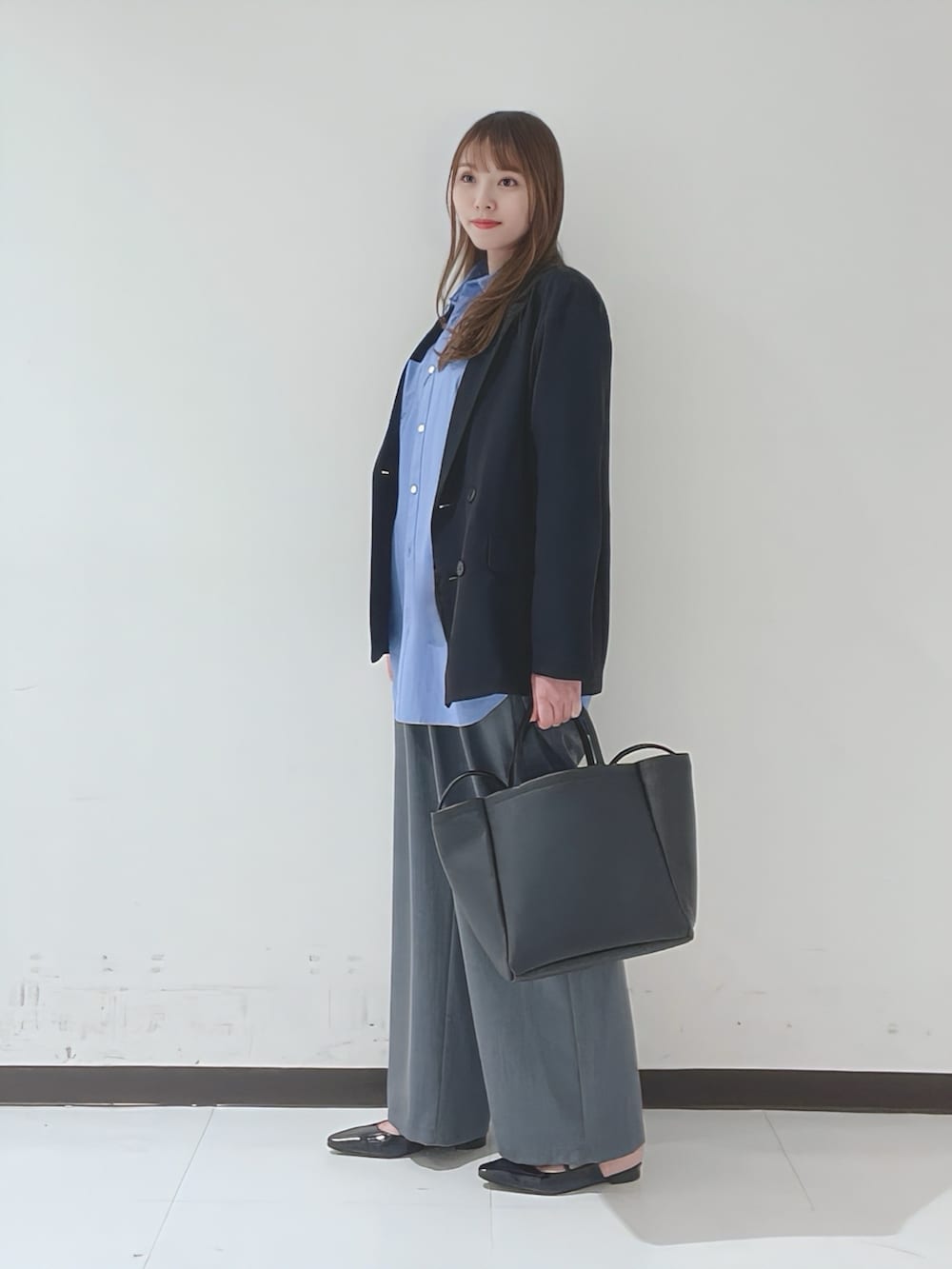 シャツ×ジャケットのようなきちんと感のあるスタイルは、骨ストさんが得意な組み合わせ◎