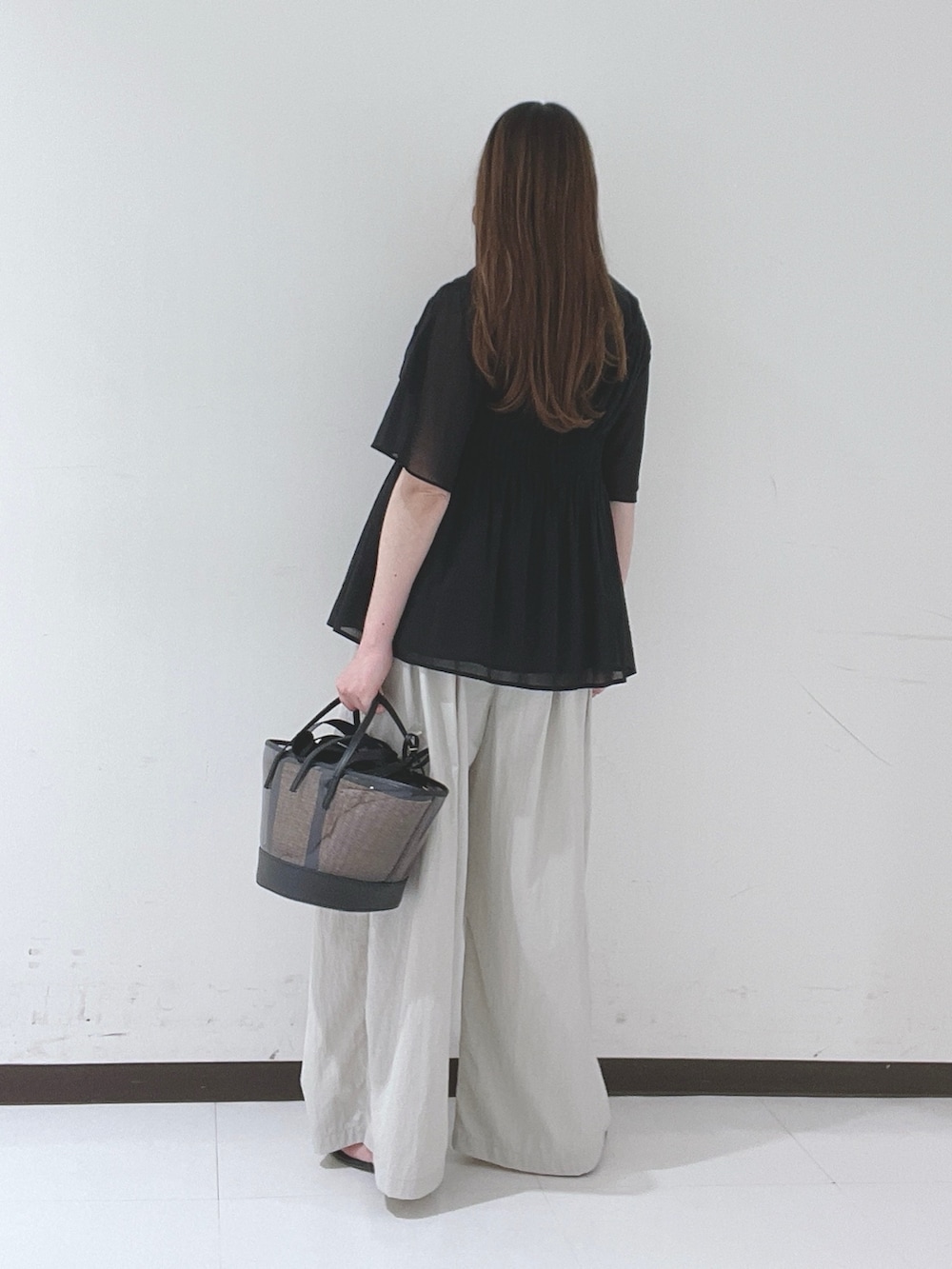 ウエストゴムでストレスフリーなのに、シルエットがきれいなのでラフになりすぎず大人っぽく着られます◎