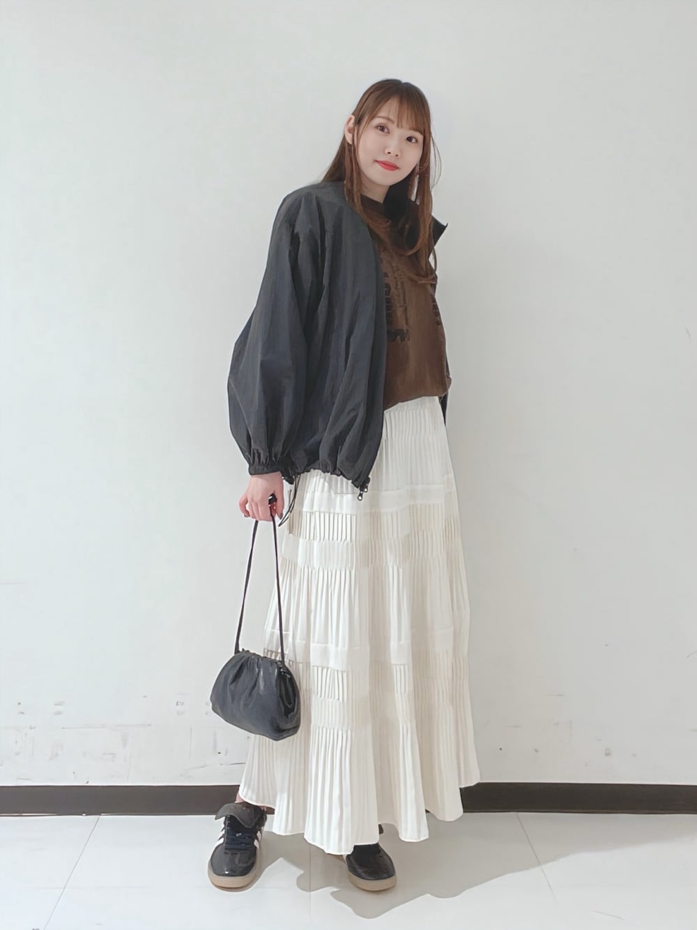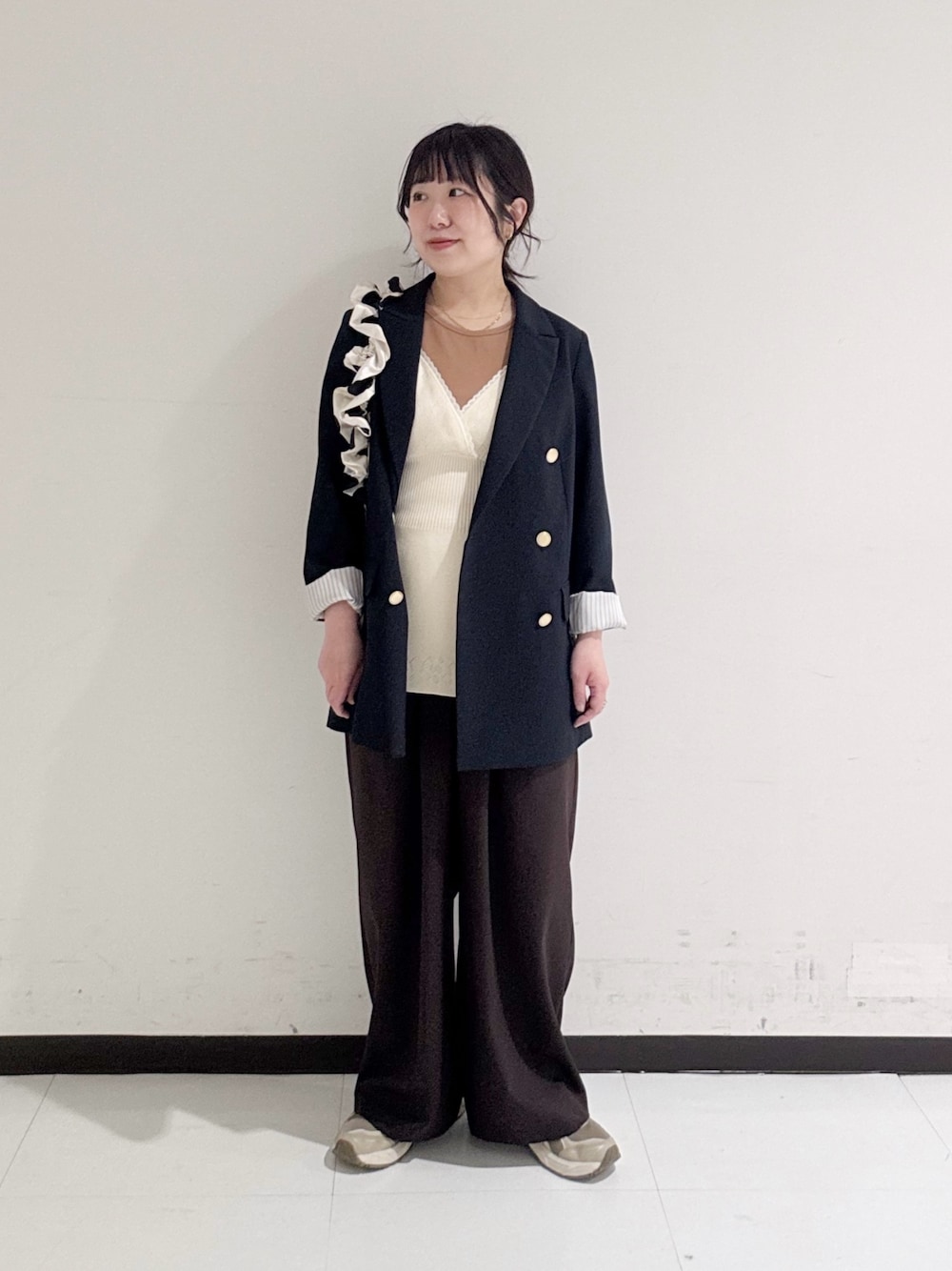 ③さりげないギャザーがポイント🧐甘くなり過ぎないのでボトムや年齢を選ばず着用していただけます✨