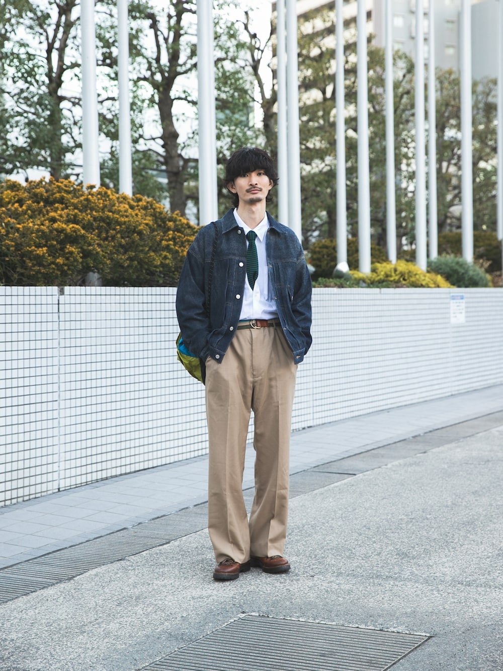 デニムと同じ解釈で合わせちゃってください。カジュアルの中に見え隠れする品の良さ、はごく自然と。