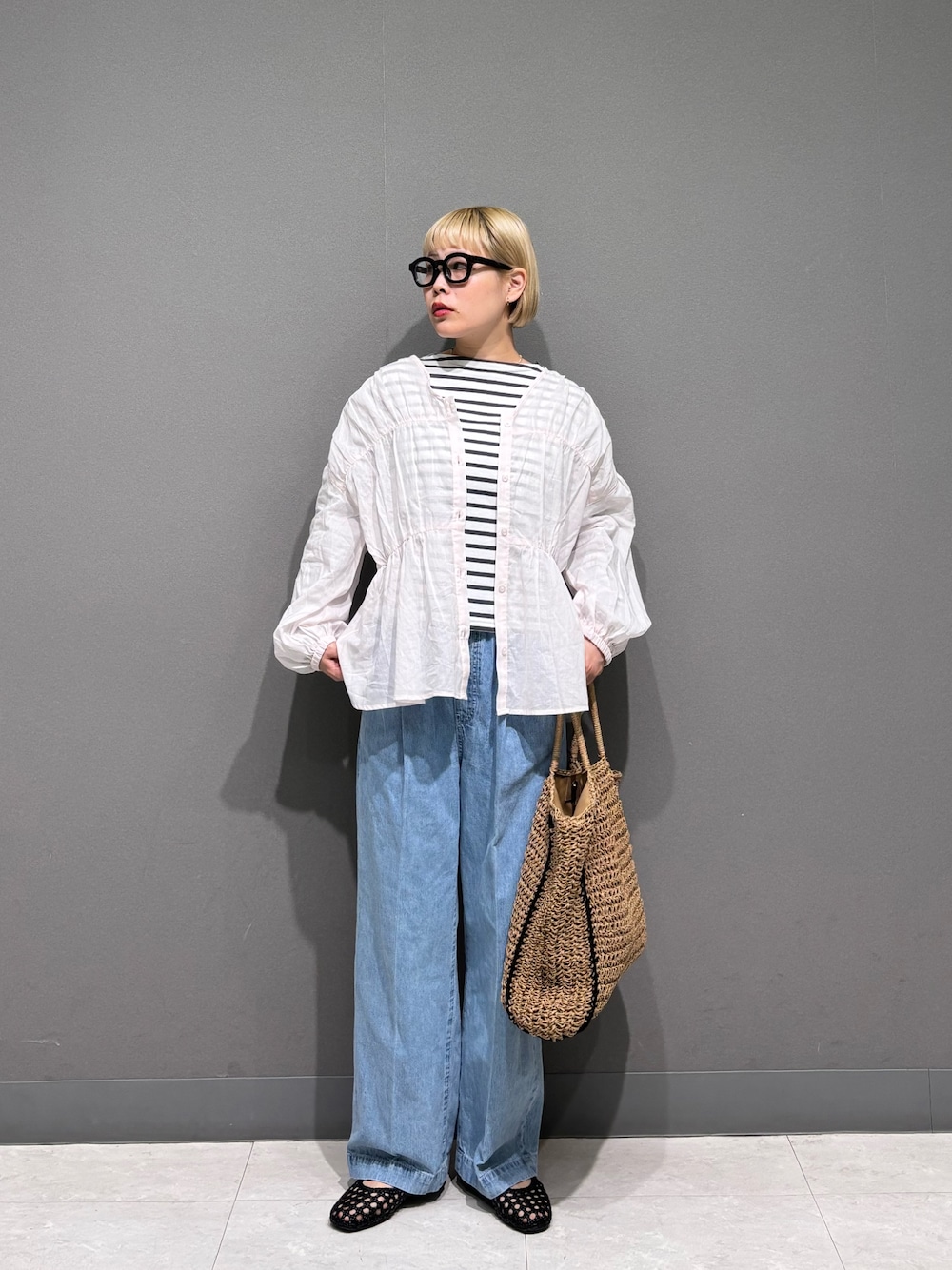 トップスはシアー感があるので