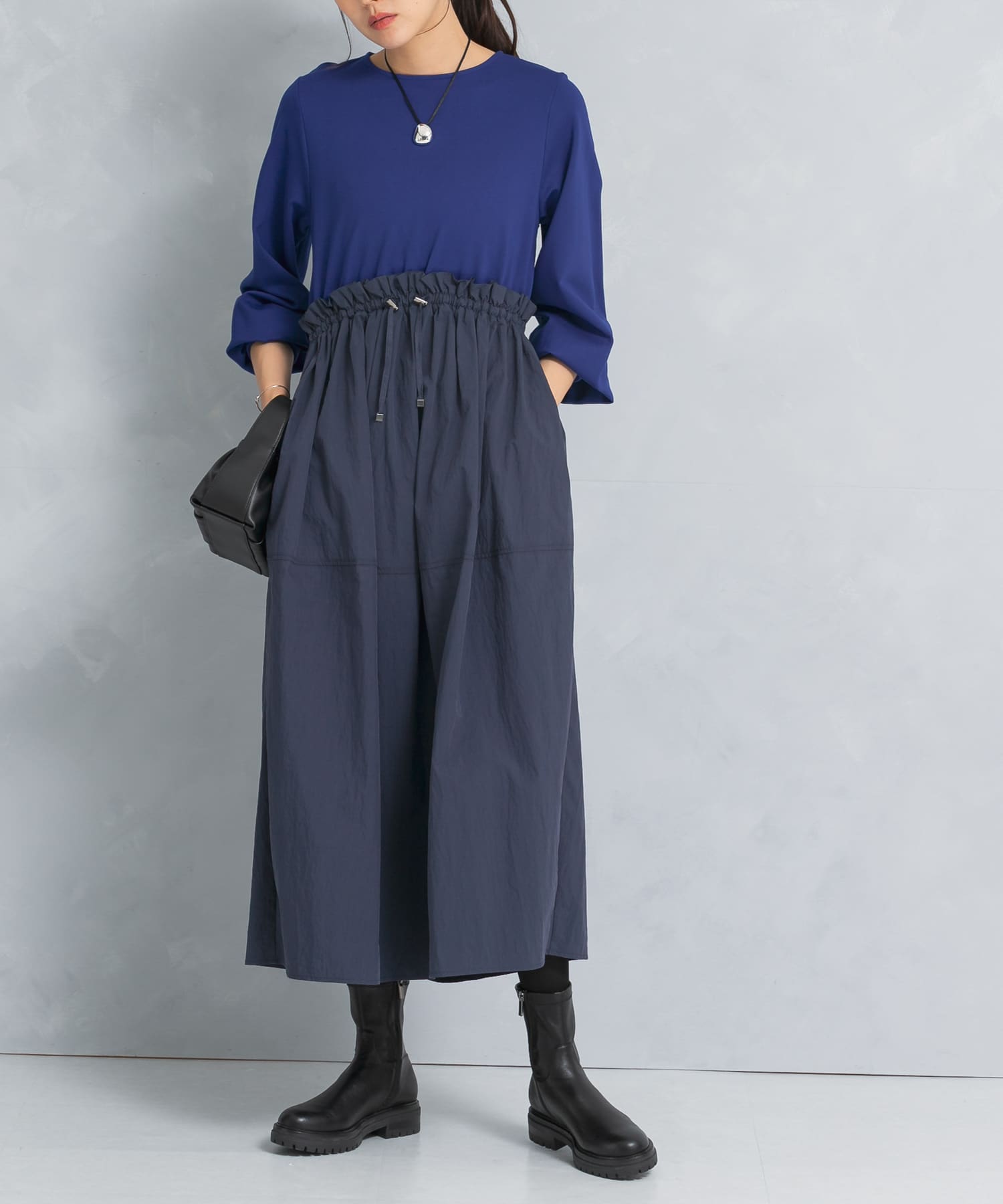 カットソーとのドッキングデザインは、キレイめカジュアルなコーディネートにぴったりです。