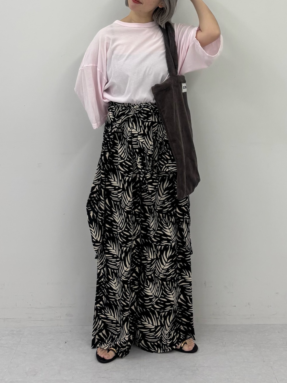 ポイントになる柄アイテムはインパクトを残しつつ、Tシャツでカジュアルに合わせました🍍