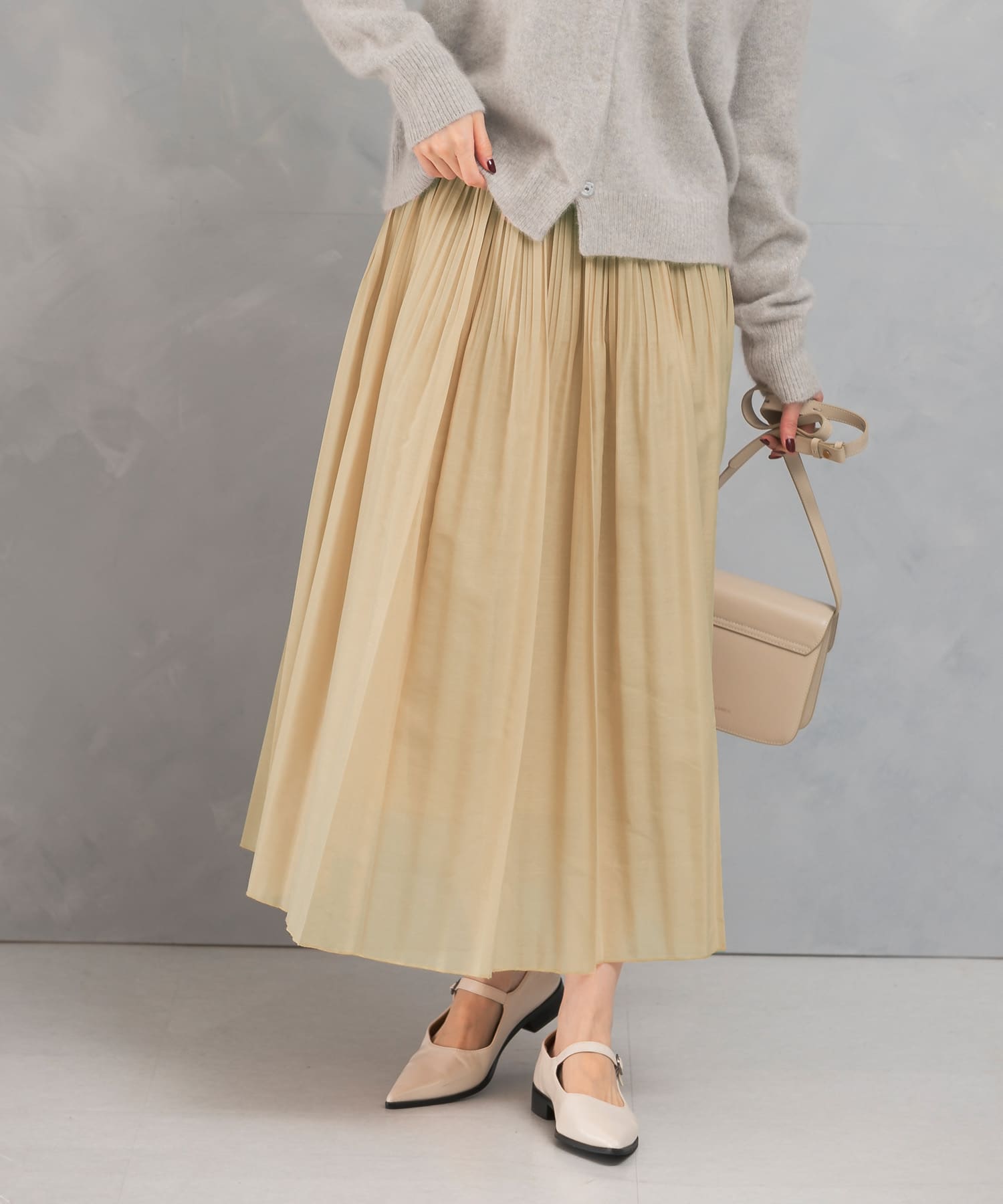 しっかりとした生地感ですが、足元は透け感があります。ニットでもスウェットでも相性抜群です。