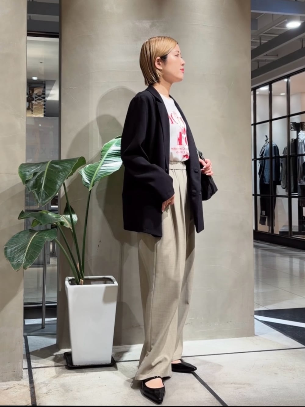 メッシュ素材なので、黒でも重たくなりすぎず、サラッとした着心地です◎