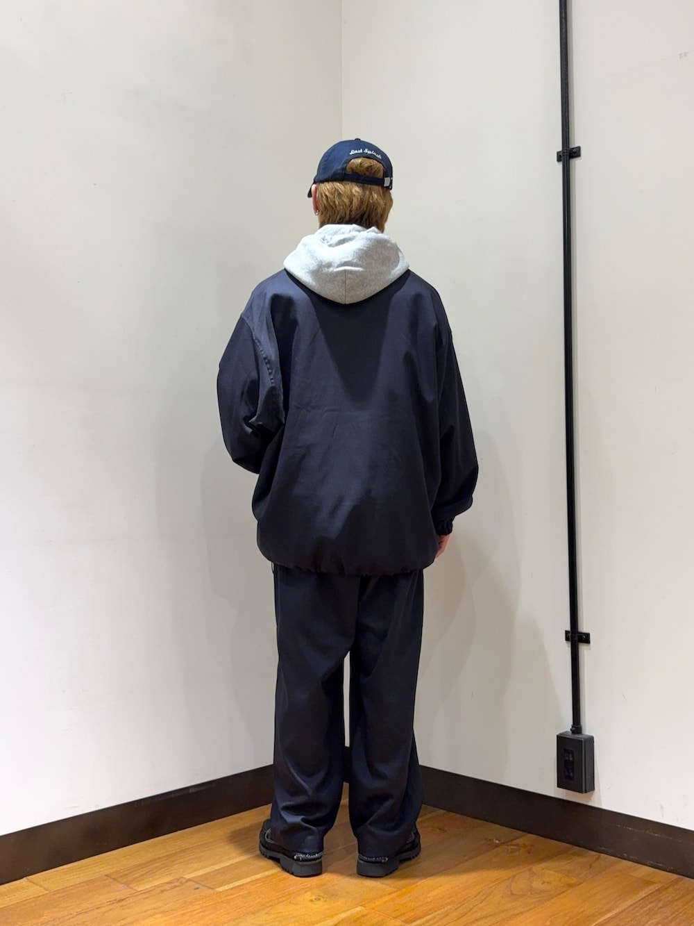 今回は自分の味を出したコーデを組んでみました。wide dadのゆったりしたカジュアルなイメージやストリートな雰囲気をパーカーとロゴと色が入ったキャップで合わせて、セットアップの綺麗さを靴で合わせました。