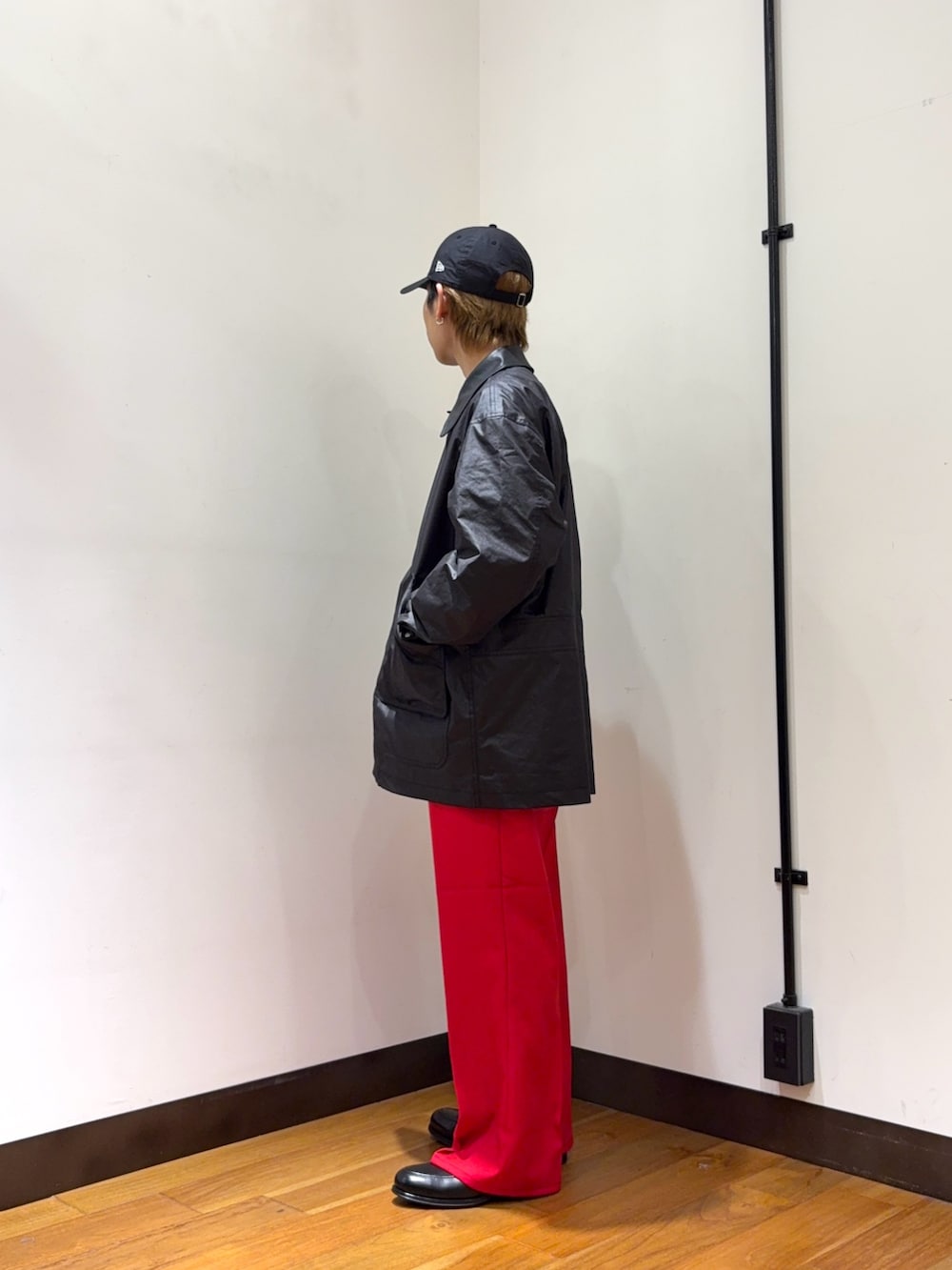 今回は赤をメインにコーデを組んでみました。インナーにnewbasicのロンTを使って、袖からほんの少しレイヤードする小さいこだわりを入れてみました。さらに他の黒のアイテムをツヤ感のアイテムを使い、上品さを表現しました。