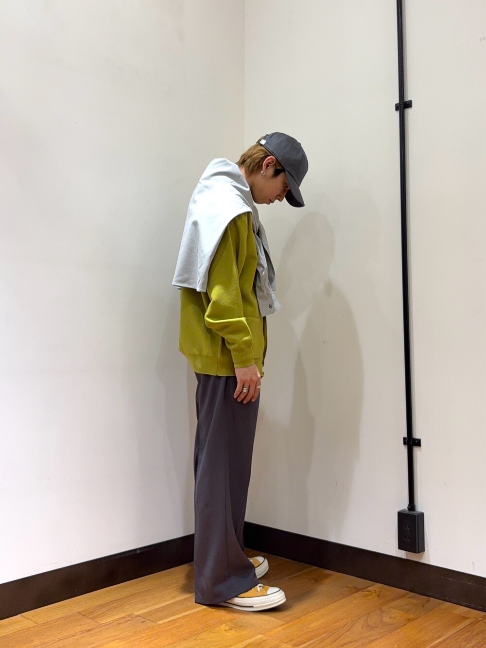 ライムイエローが春の軽やかさと少しの知的さを出してくれます。肩掛けのシャツジャケットも気温調整で使えるので万能アイテムです✨️