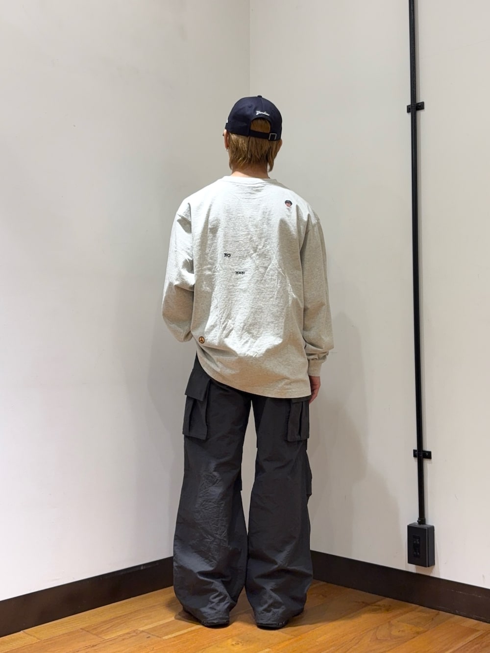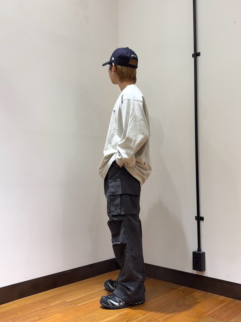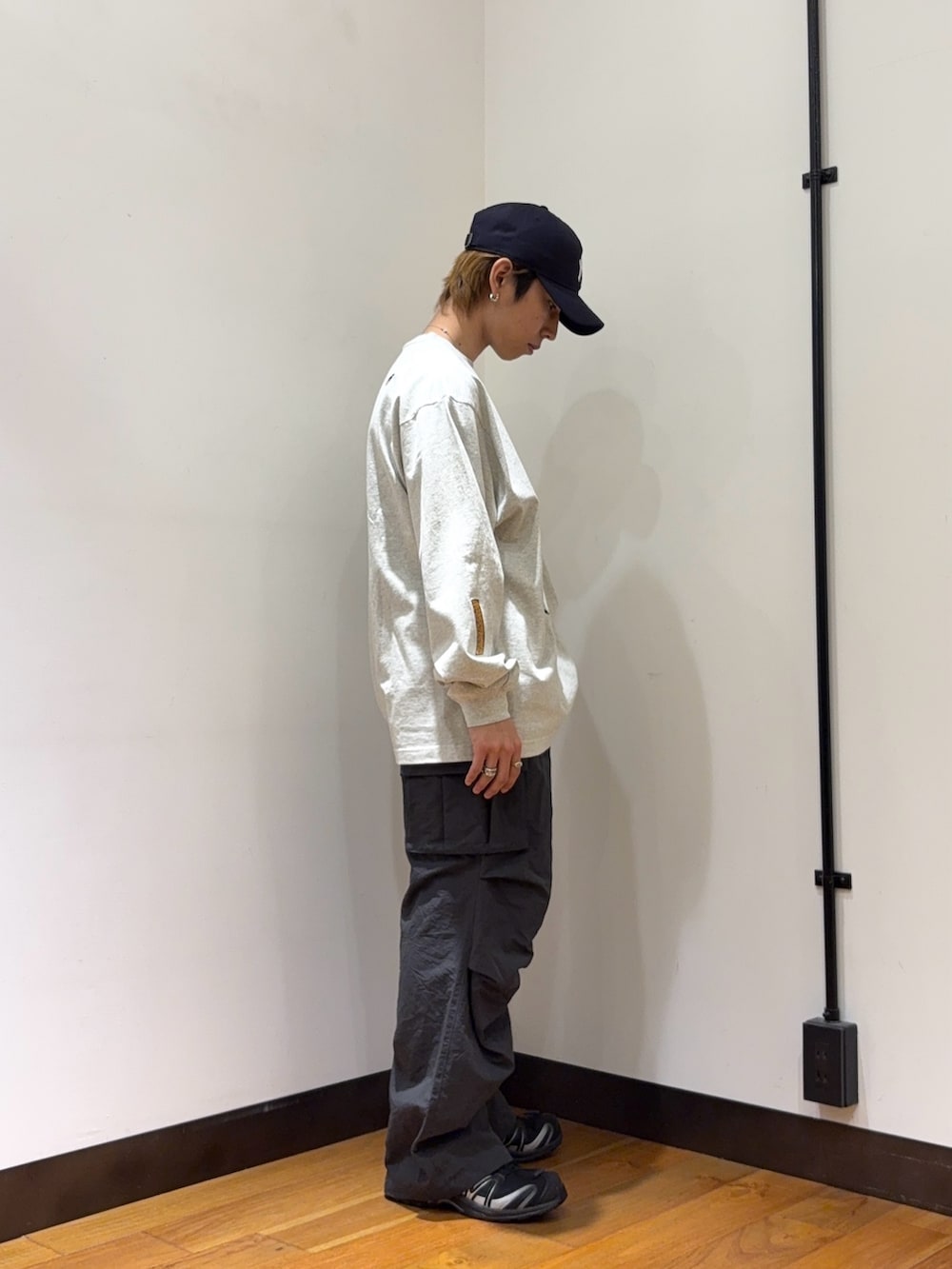ゆったりとしたサイズ感に程よくちりばめられているワッペンがこなれ感に繋がるロンTです。やっぱりパンツはカーゴパンツやデニムなどのカジュアルで合わせたい気持ちはありつつ、キレイめで中和するのもアリですね✨️