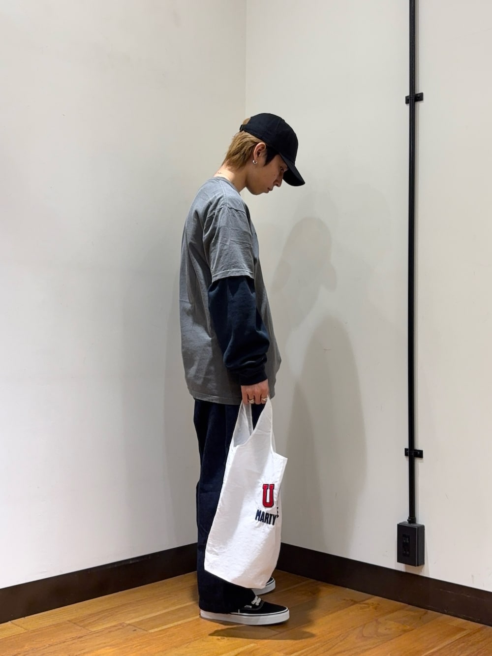 widedadの大人カジュアルとMARTY SUPREMEのカジュアルがマッチして相性抜群です。Tシャツもいいんですが、バッグもチャームな雰囲気で持っておくだけでテンションが上がります。