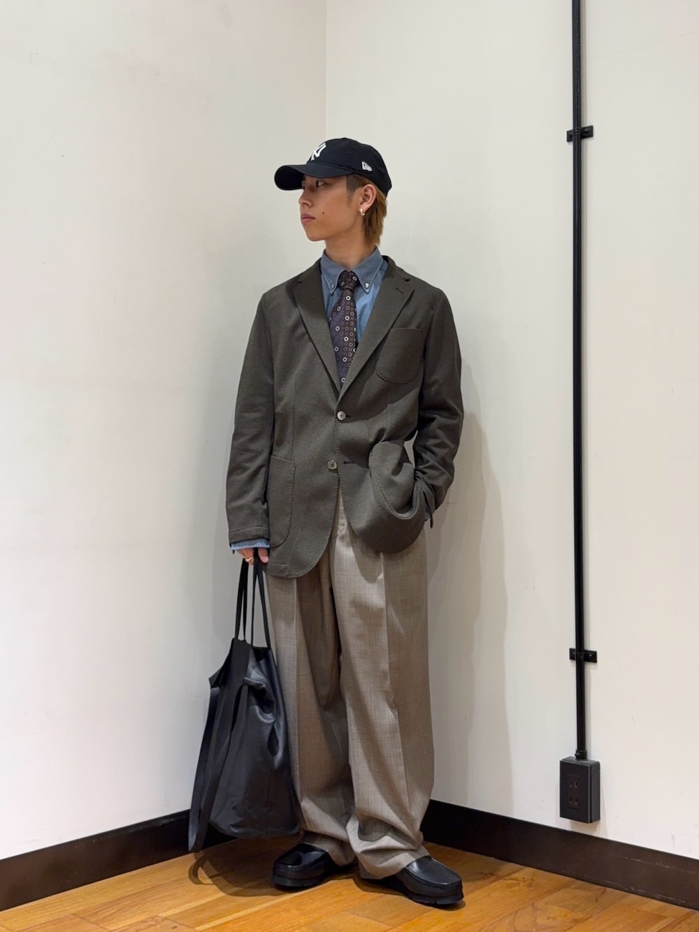 ジャケット以外の色を合わせて、ジャケットをより一層引き立たせるコーディネートにしました。スウェットパンツやスニーカー、キャップでラフなスタイルにし、ジャケットで少しキレイめに寄せてコーデを締める。簡単に真似できるコーディネートだと思います!