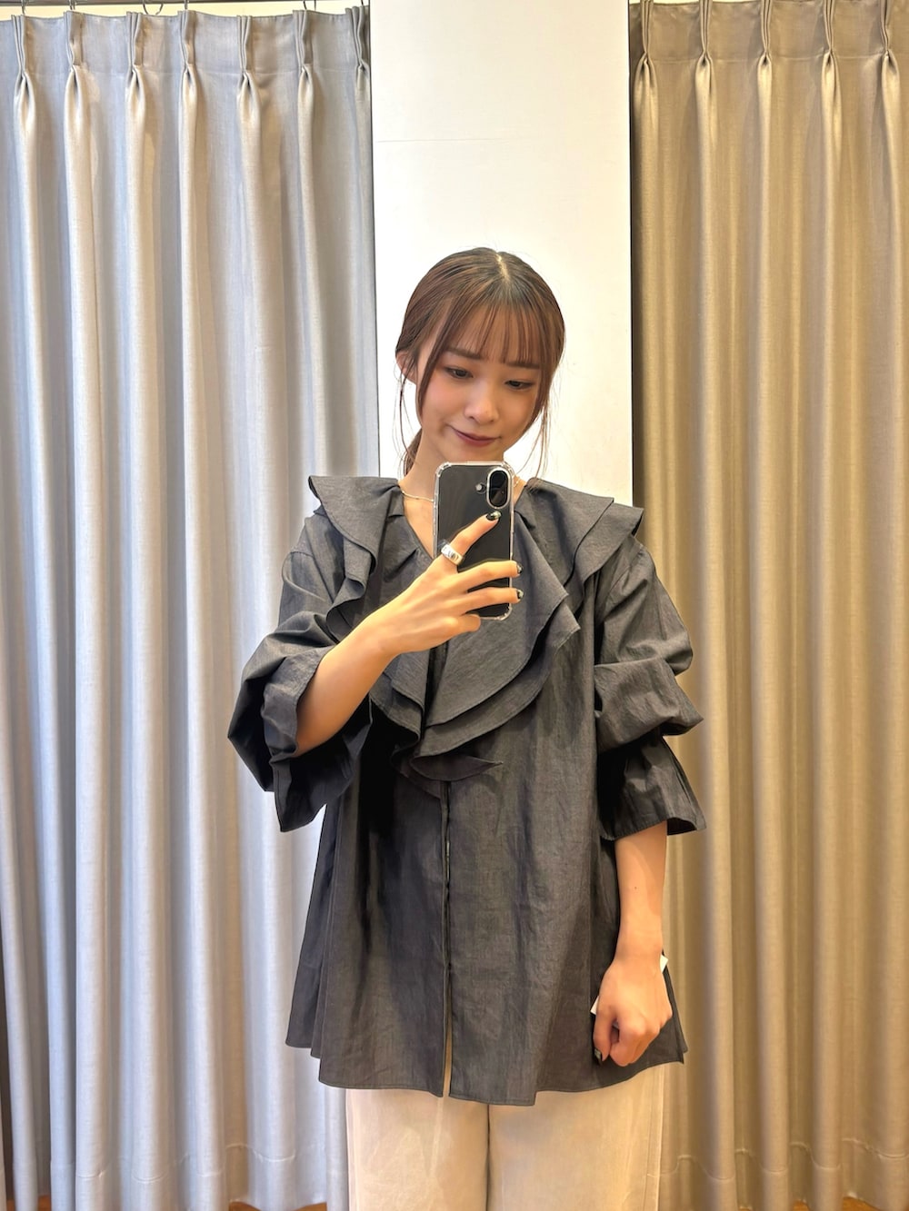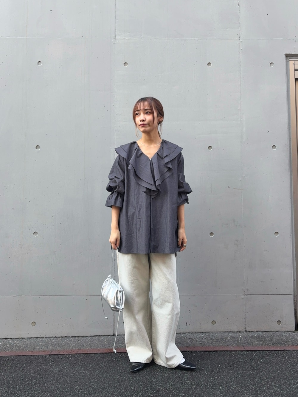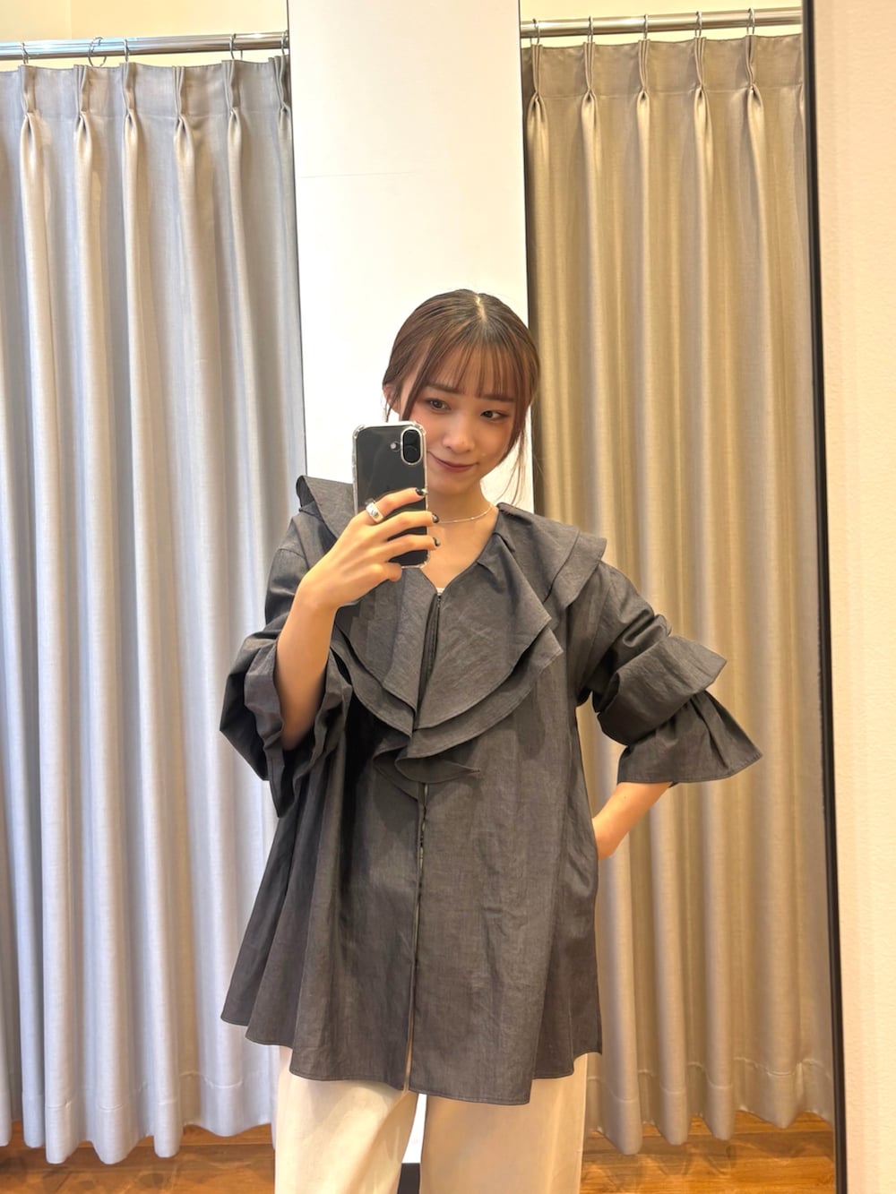 ROSSOVネックラッフルシアーデニムブラウス- 着用カラー: