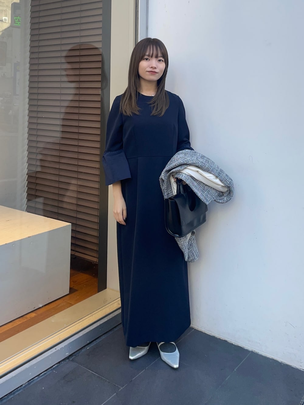 ワンピースは袖がフレアになった、ワンピースです!36のサイズ感は低身長でも着れる着丈でした✨ストレッチ性とシワが着きにくい素材で、セレモニー用にオススメのアイテムです!