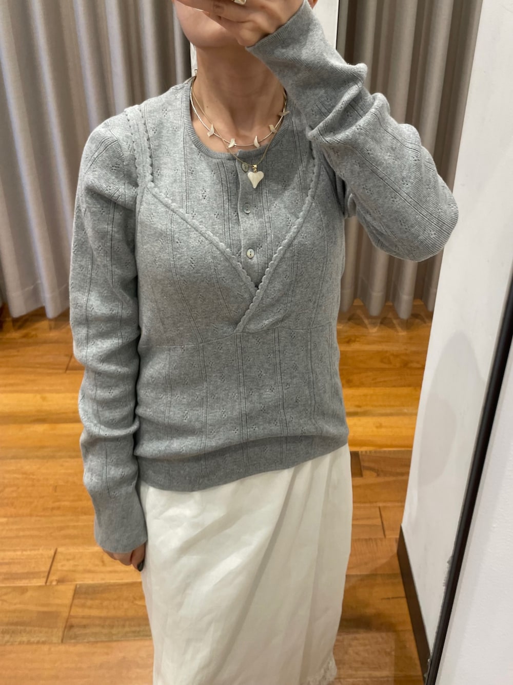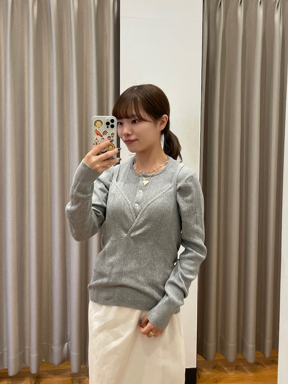 トップスはキャミと重ね着したセットアップとしても使えるアイテムです!パターンメッシュ柄が今年らしい1枚で、コットン100%なので着心地抜群です✨✨それぞれ別々に使えて、カジュアルにデニムでも、合うのでオススメですよー!