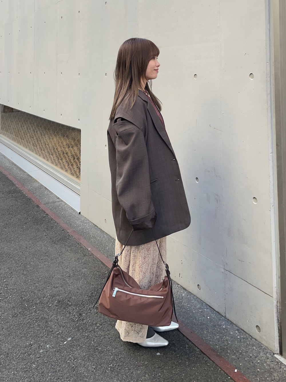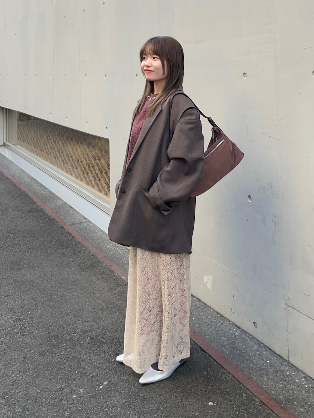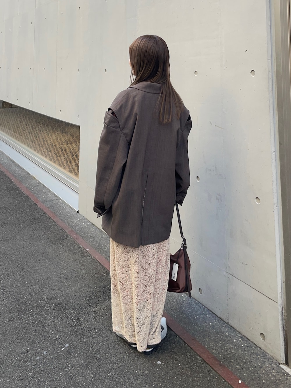 ジャケットもLAATOの人気テーラードジャケットです!オーバーなシルエットがトレンド感満載で、肩のスリットが他にないデザインで、周りとの被りにくくオススメポイントです!ポリエステル素材でシワもつきにくいですよ〜✨