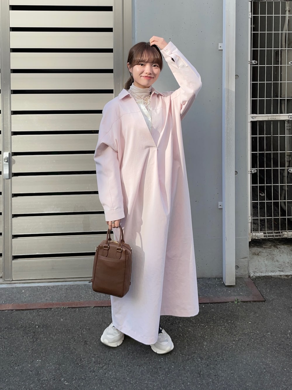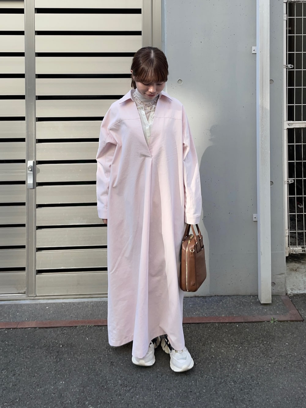 ワンピースはアーバンリサーチROSSO のスキッパーデニムワンピースです!フリーサイズですが、スニーカーを履けば低身長でも着れる着丈でした✨首元スッキリしているので、中にインナーとプルオーバーを重ね着してみました!少しずつ暖かくなってきたので、1枚でも着こなせるよう、中にたくさん着てますが、着膨れなく使えますよ〜!
