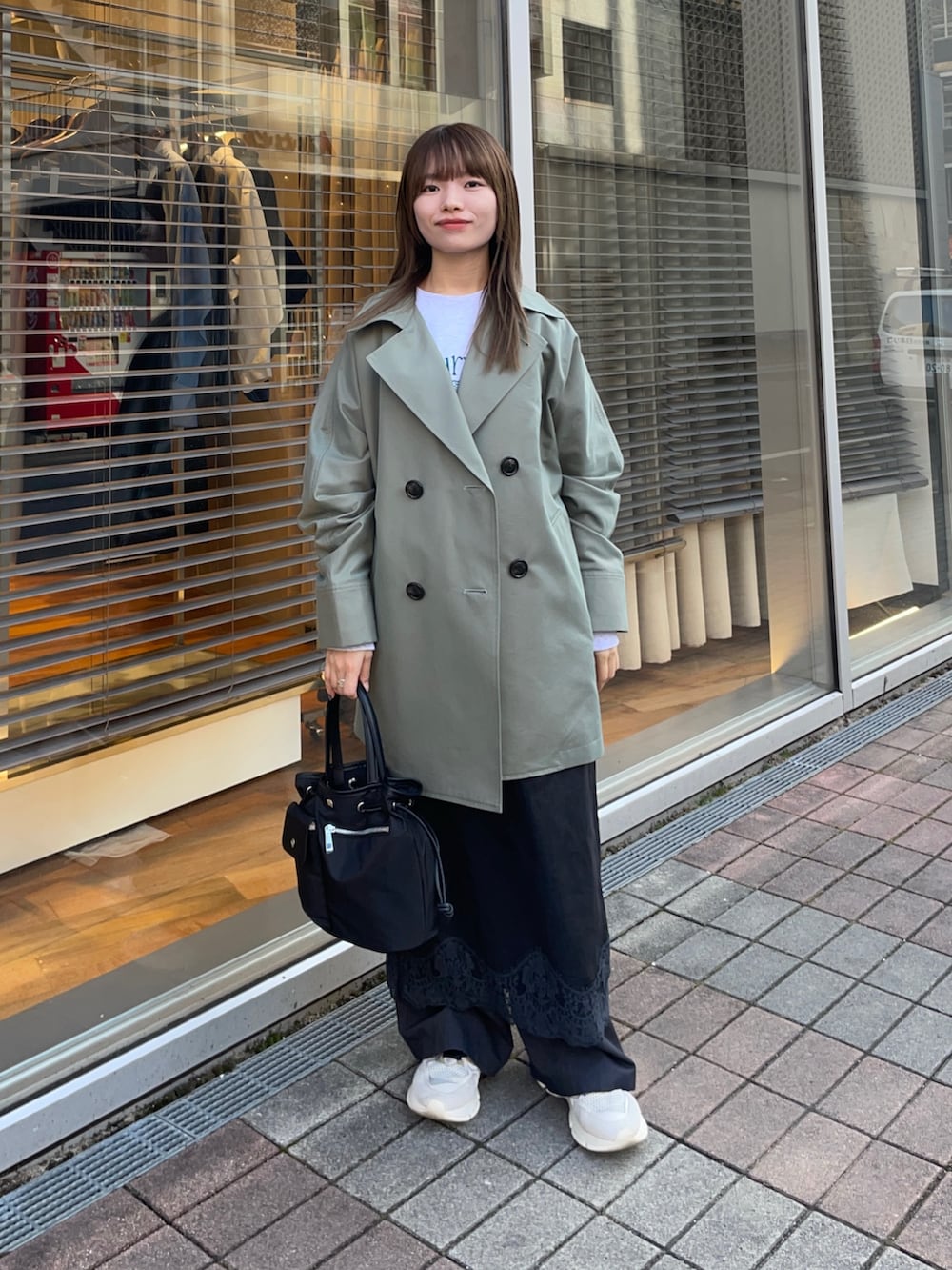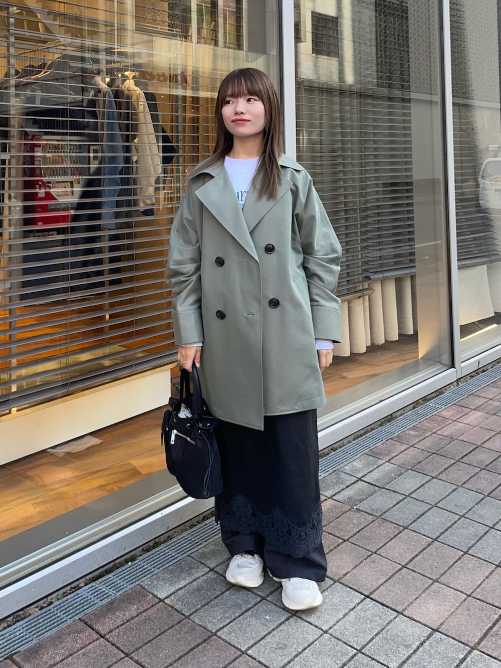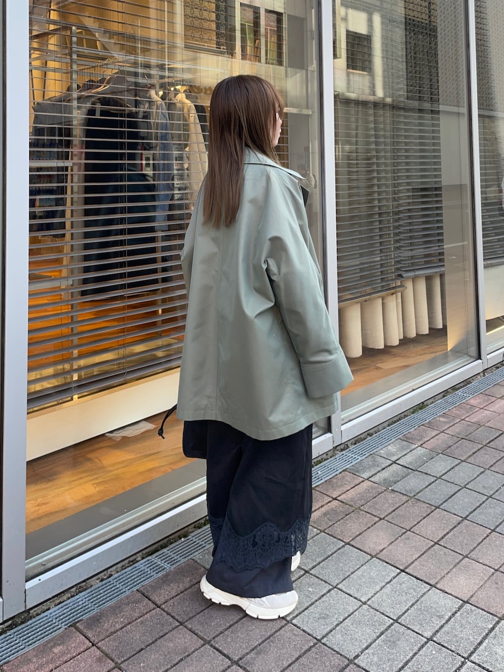 コートはTICCAのMINIトレンチコートです!着てみるとAラインのキレイなシルエットのコートでやや厚みのある質感もしっかりとした作りです!カラーが珍しいグリーンなので、ベージュ系以外の春アウターお探しの方にオススメですよ✨✨