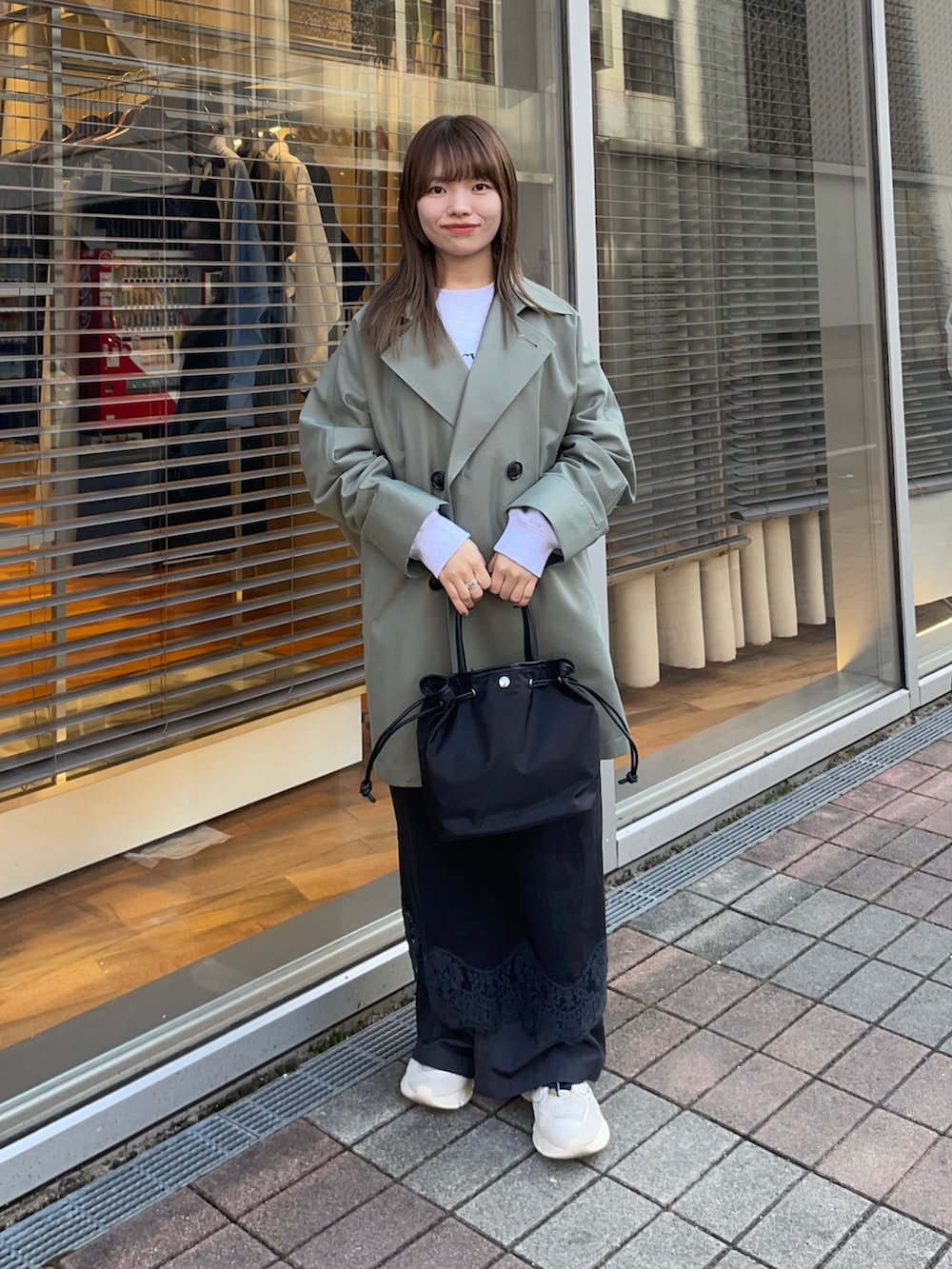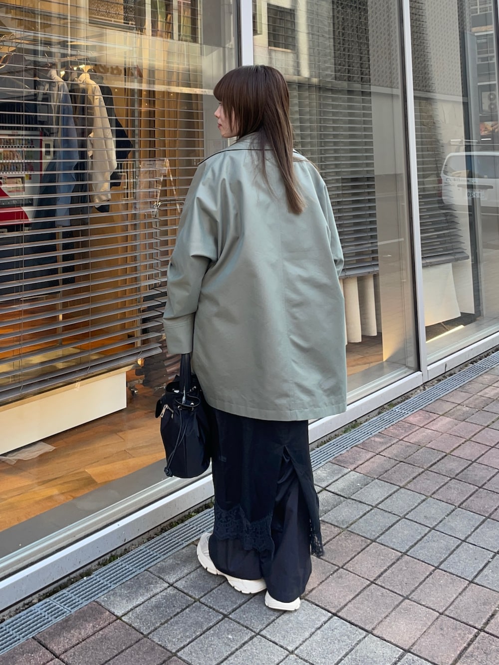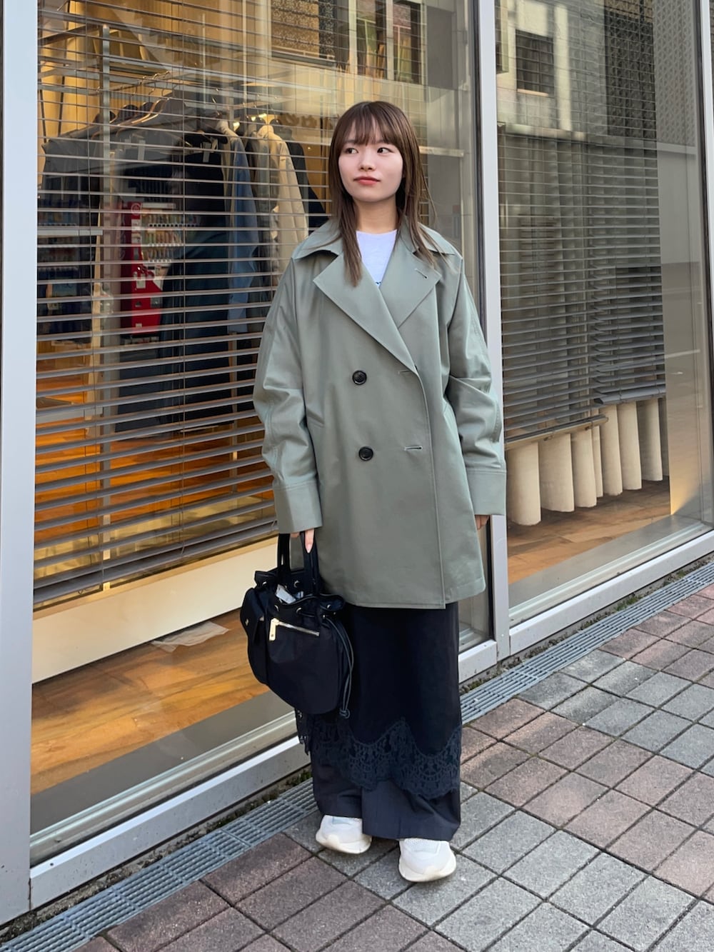 コートはTICCAのMINIトレンチコートです!着てみるとAラインのキレイなシルエットのコートでやや厚みのある質感もしっかりとした作りです!カラーが珍しいグリーンなので、ベージュ系以外の春アウターお探しの方にオススメですよ✨✨