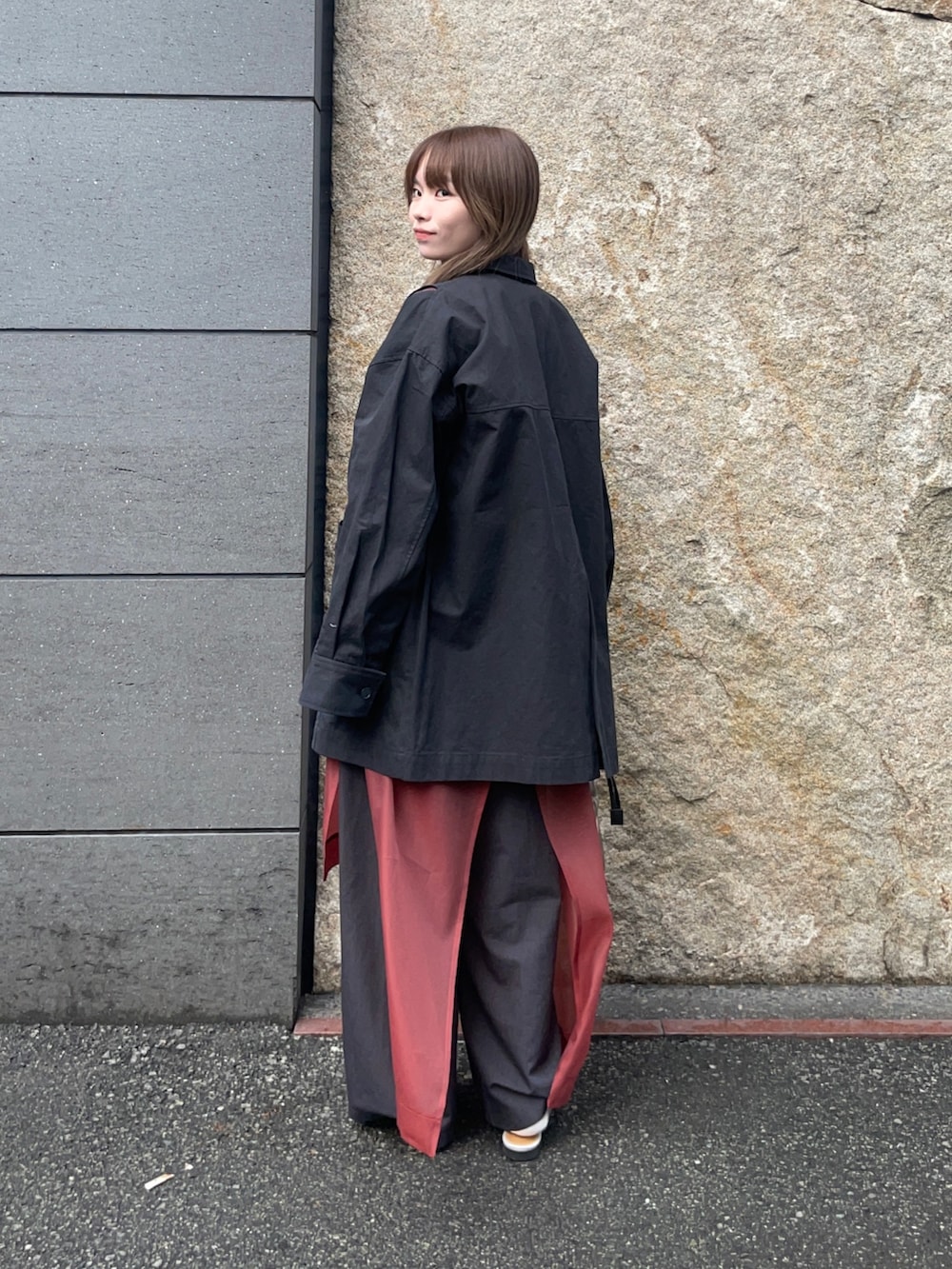 ジャケットは肩にスリットが入ったカバーオールで、綿100の着心地最高のアイテムです!かなりオーバーなシルエットですが、ハリのある素材とボタンを留めればシャツみたいにもお使いいただける万能ジャケットです✨