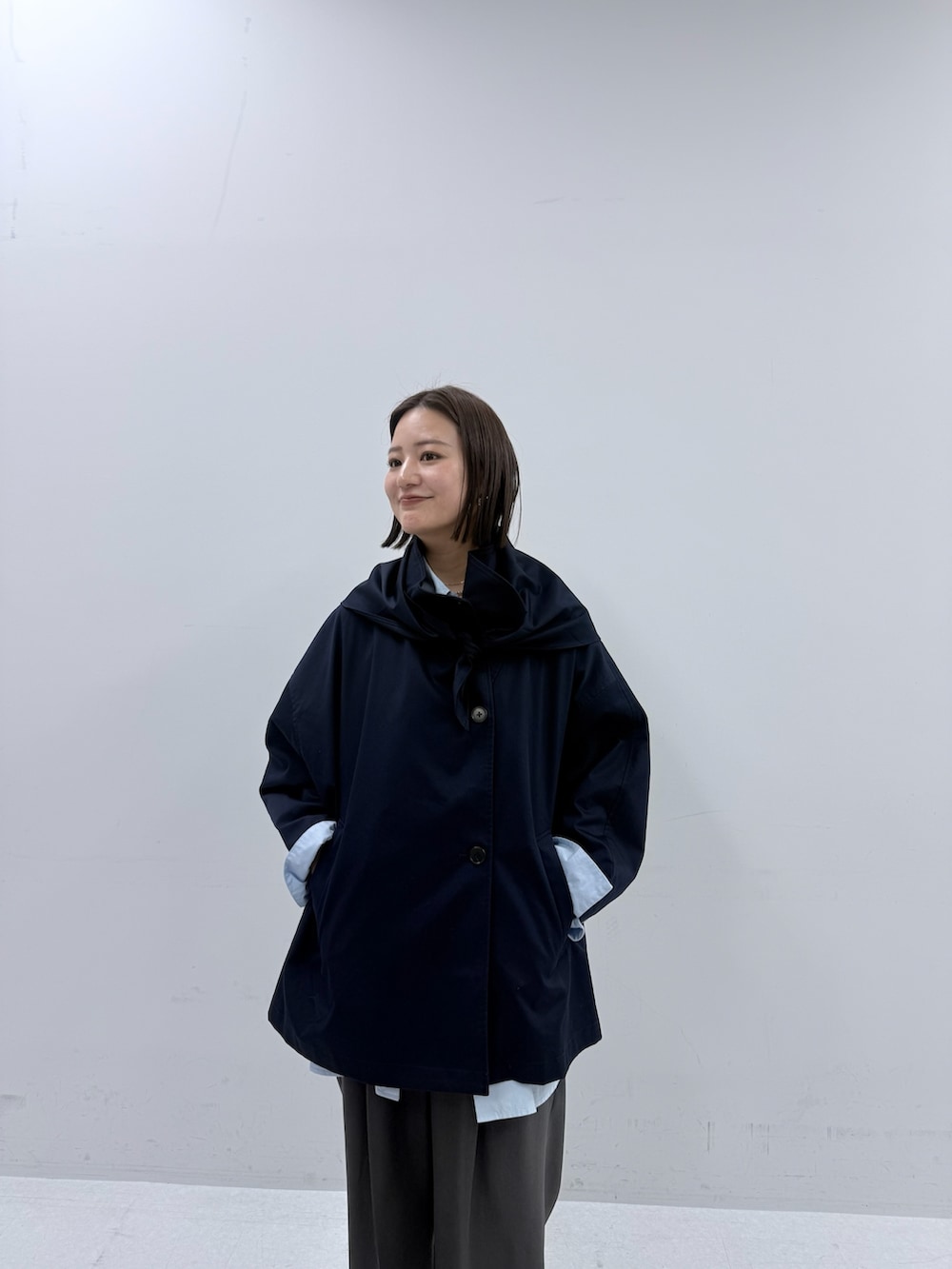 スタンドカラーミドル丈トレンチコート