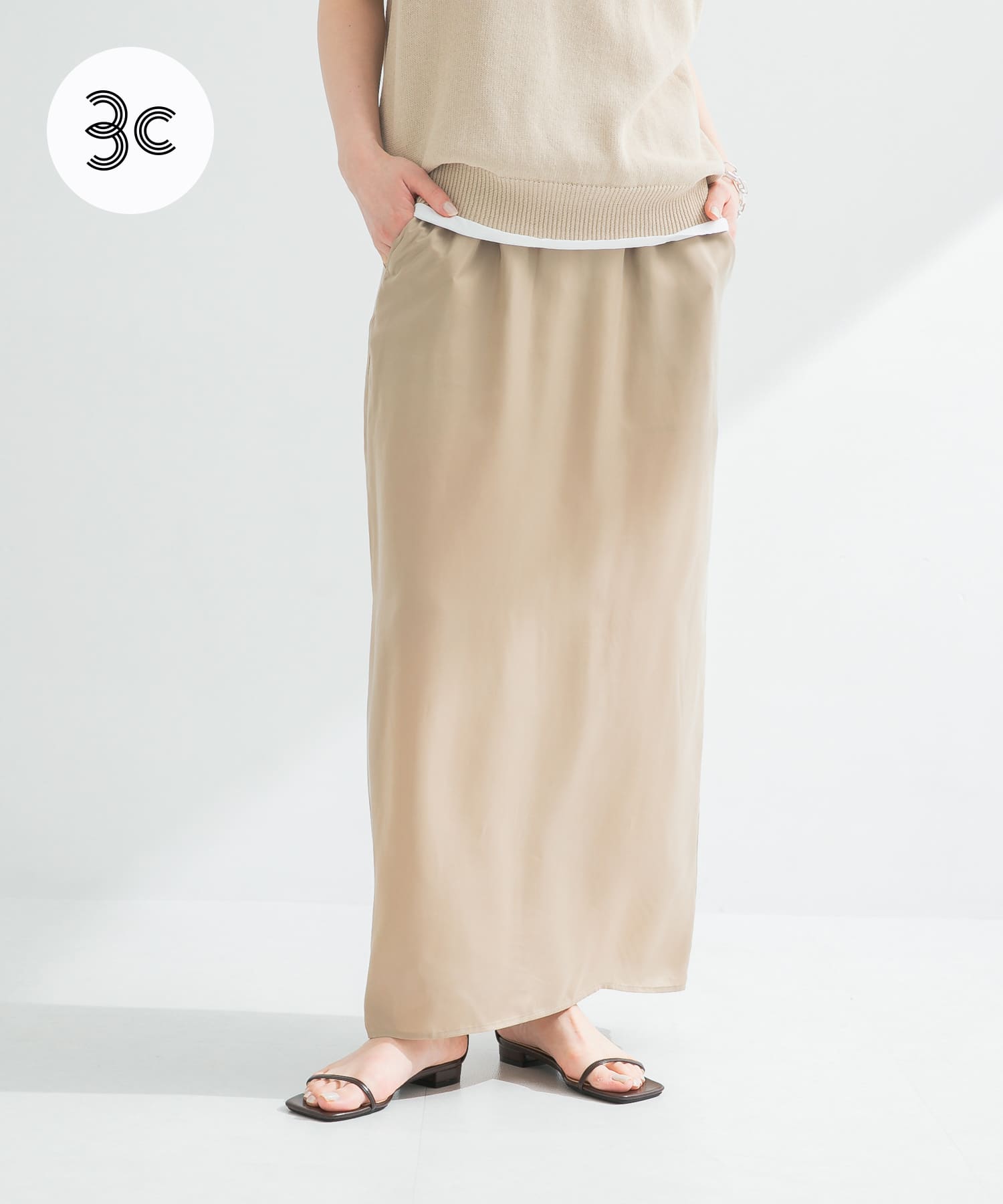 キュプラ素材でサラッと着れるスカートです!
