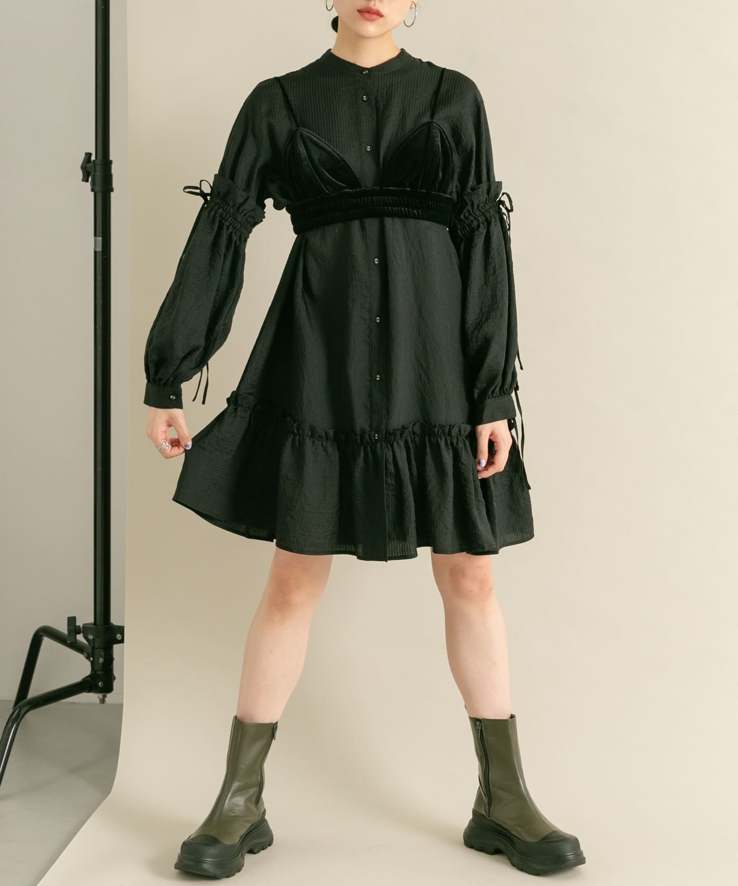KBFボリュームスリーブストライプミニワンピース- カラー: