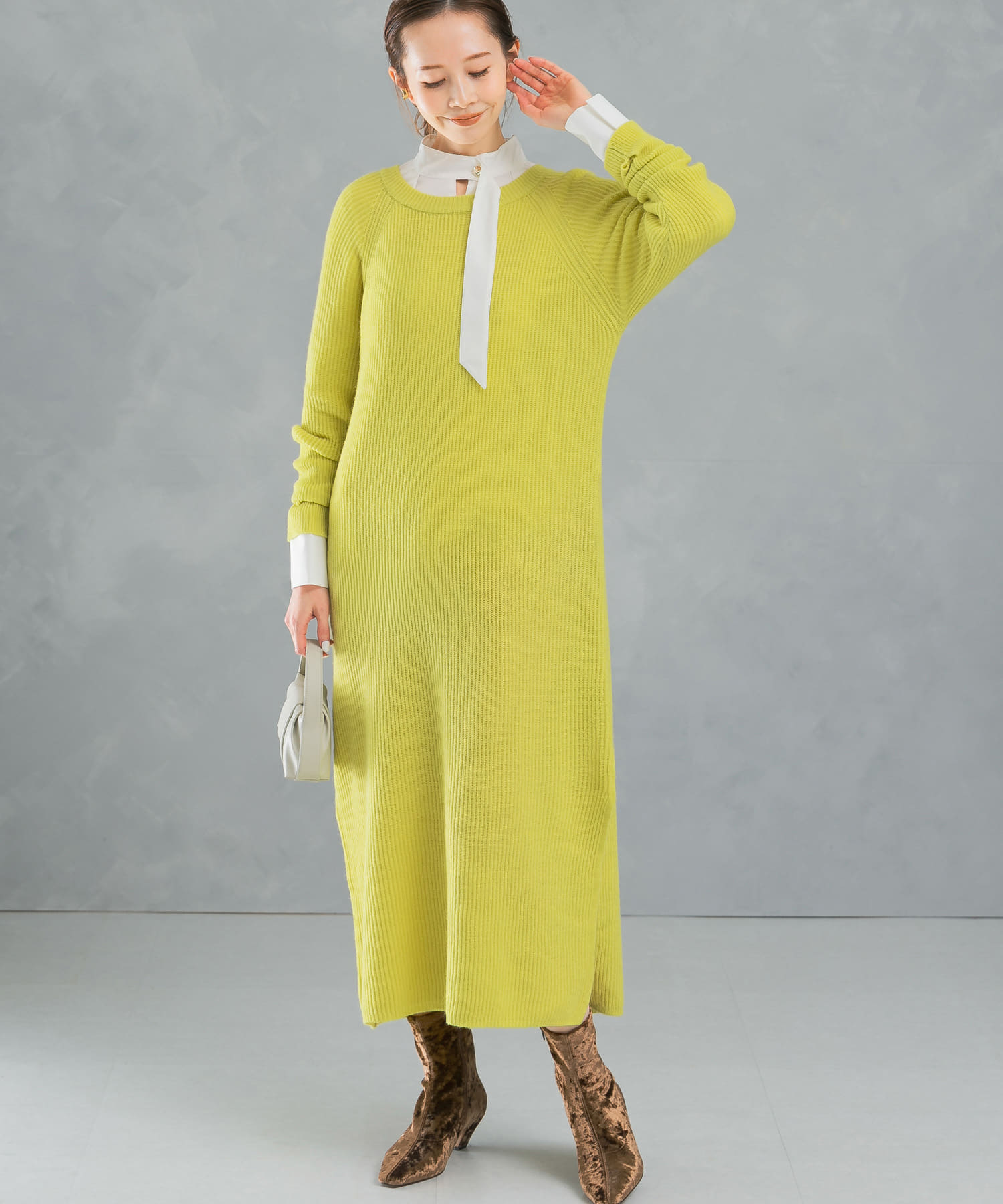 ヤク混サイドスリット畦ニットワンピース