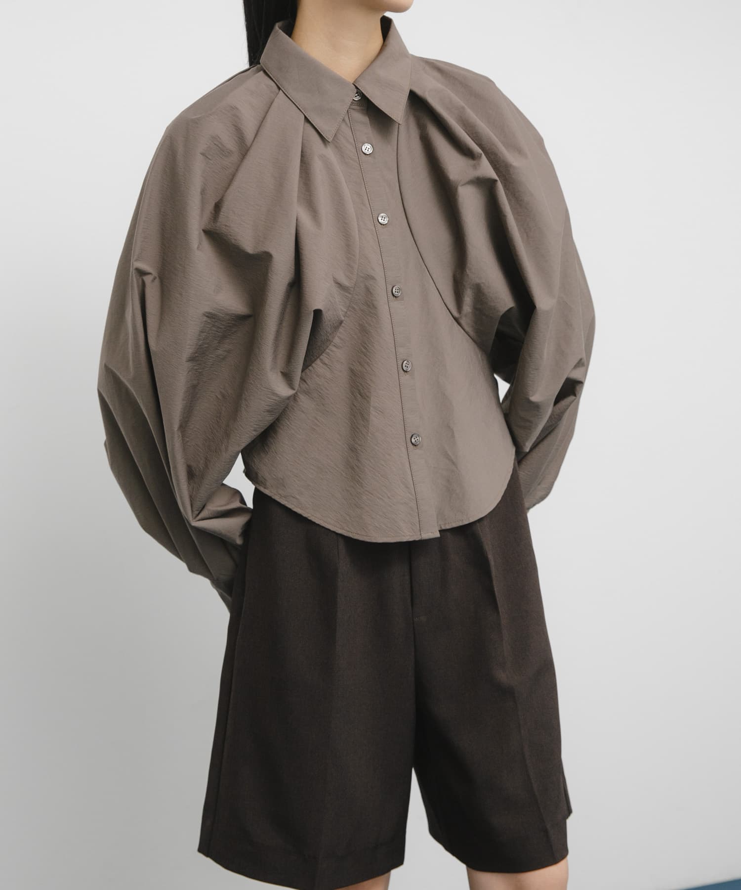 ボリュームスリーブクロップドシャツ