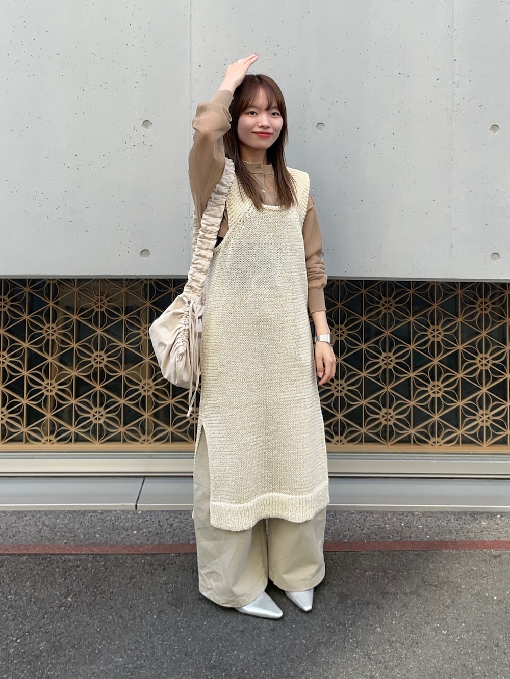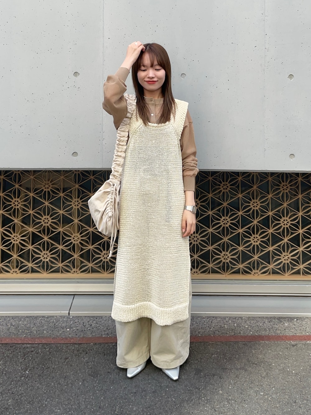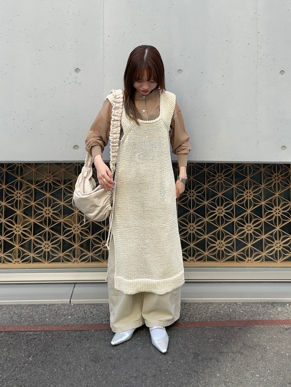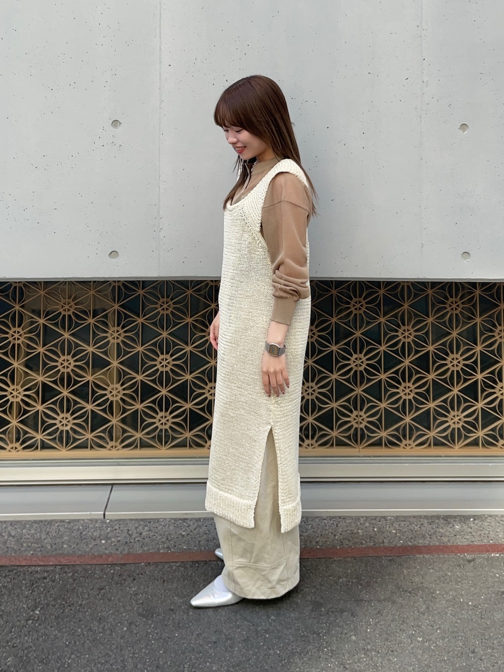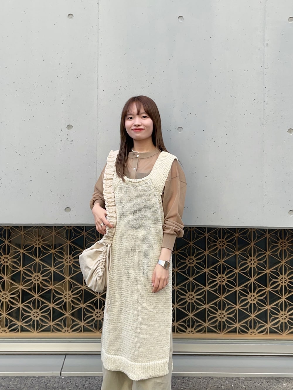 中にシアーカーディガンを重ねてみました!前後で長さの違うアイテムで、今回は分かりにくいですが、こちらも個性的で唯一無二のとっても可愛いデザインです✨