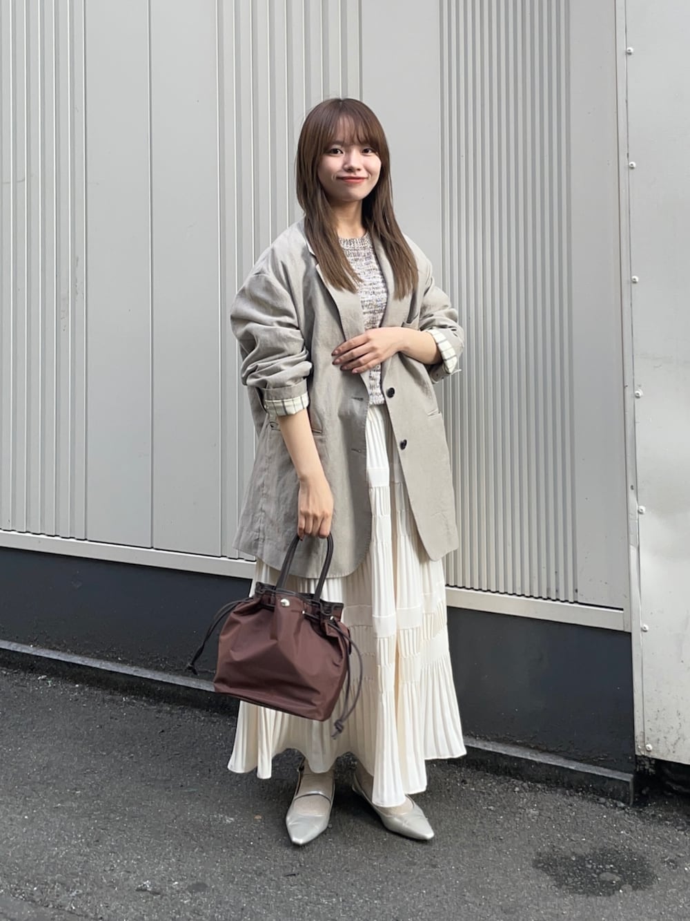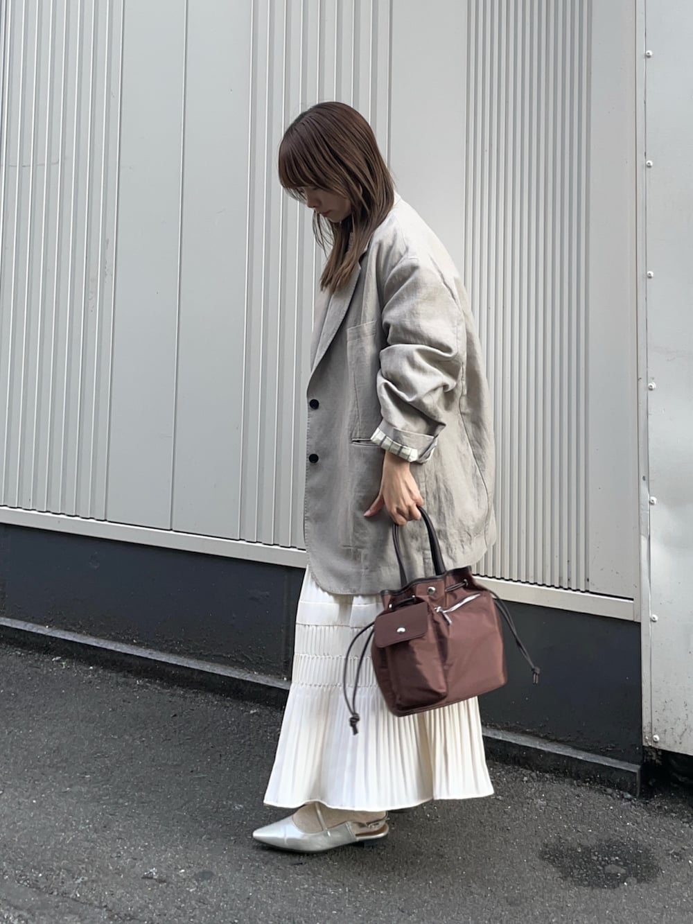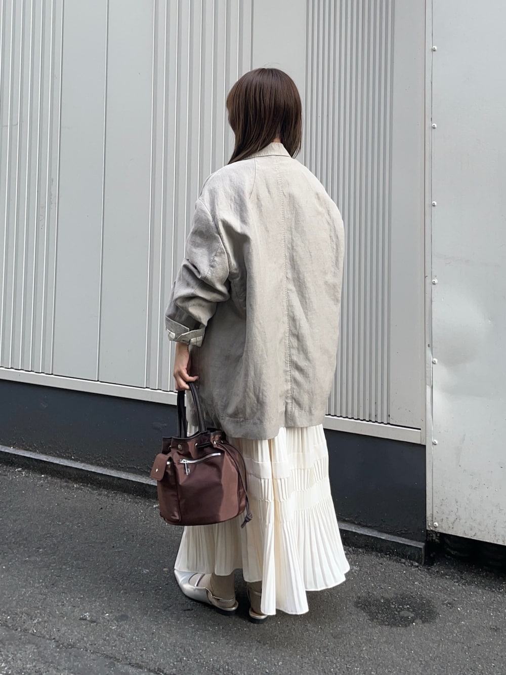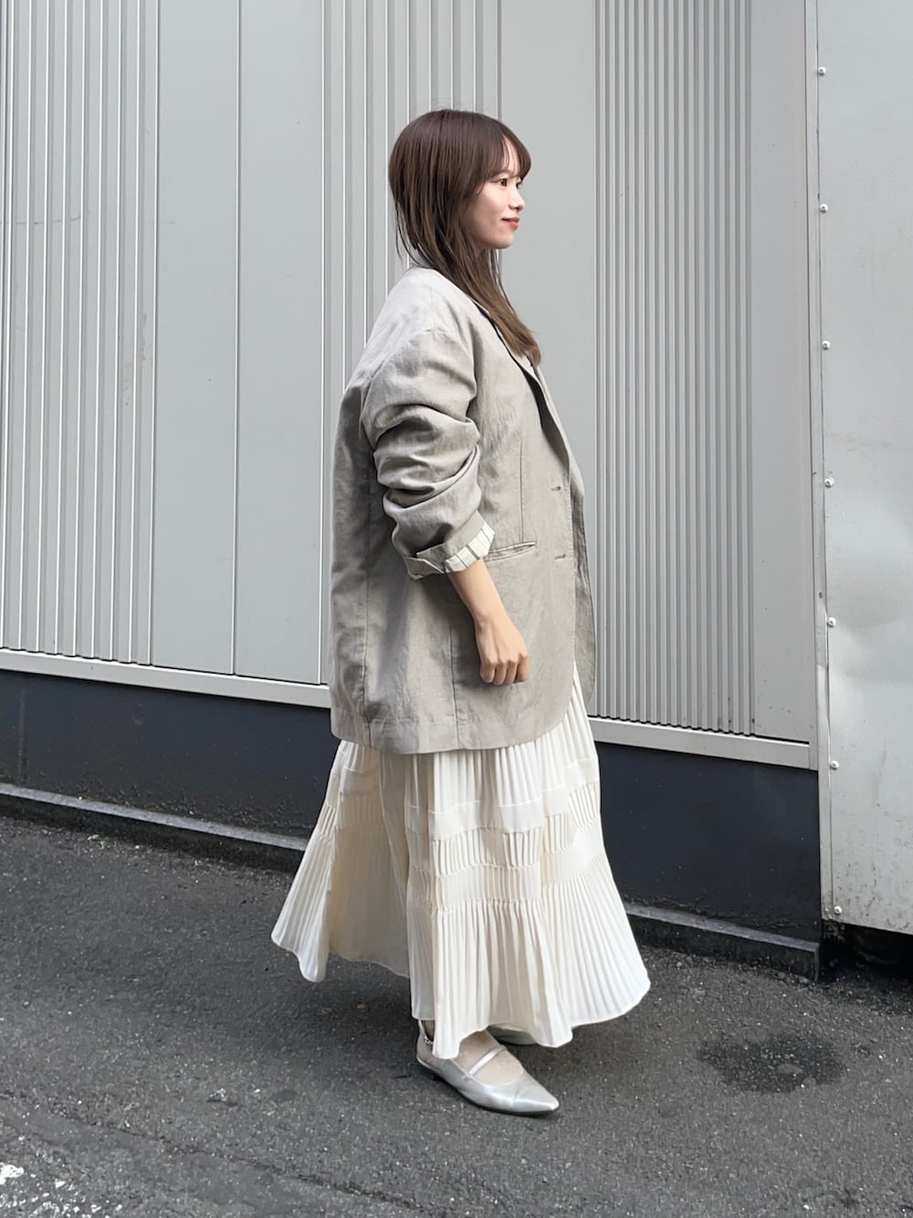 ジャケットはnew basic のオーバーワッシャージャケットです!あえて大きめビックシルエットの羽織を重ねてみました!手首を折って着ると低身長でも着られてる感なく、使えますよ✨ウールと麻素材が使われており、夏も使える軽やかなアイテムです!