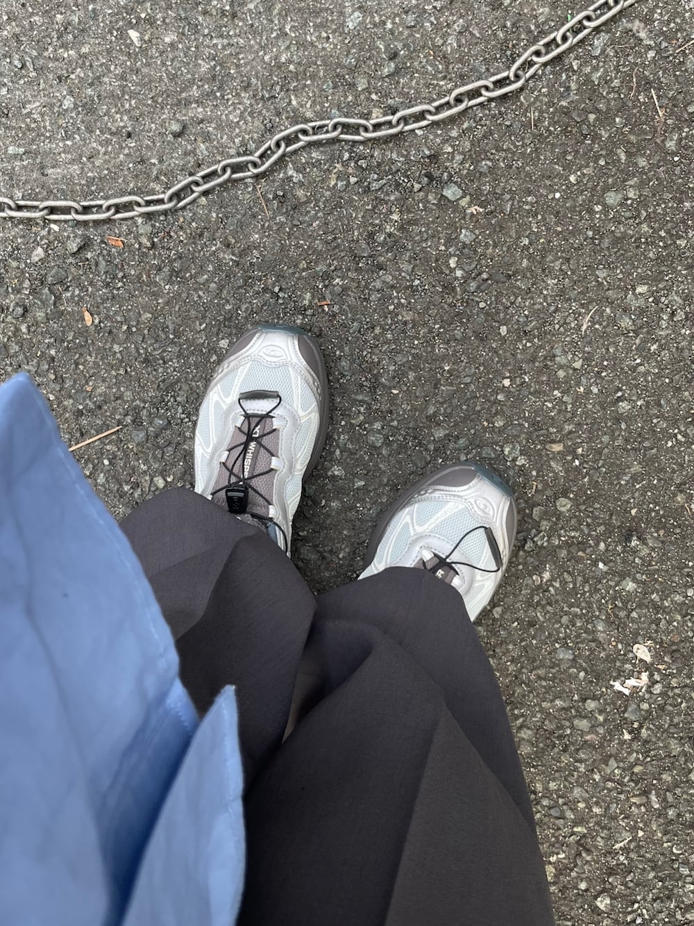 パンツはダブルクロスキュプライージーパンツです!さらっと履きやすく、ゆったり後ろのウエストがゴム素材になったデザインです。私の身長で36を履いており、ウエスト折っているので低身長はお直しが必要かと思います!