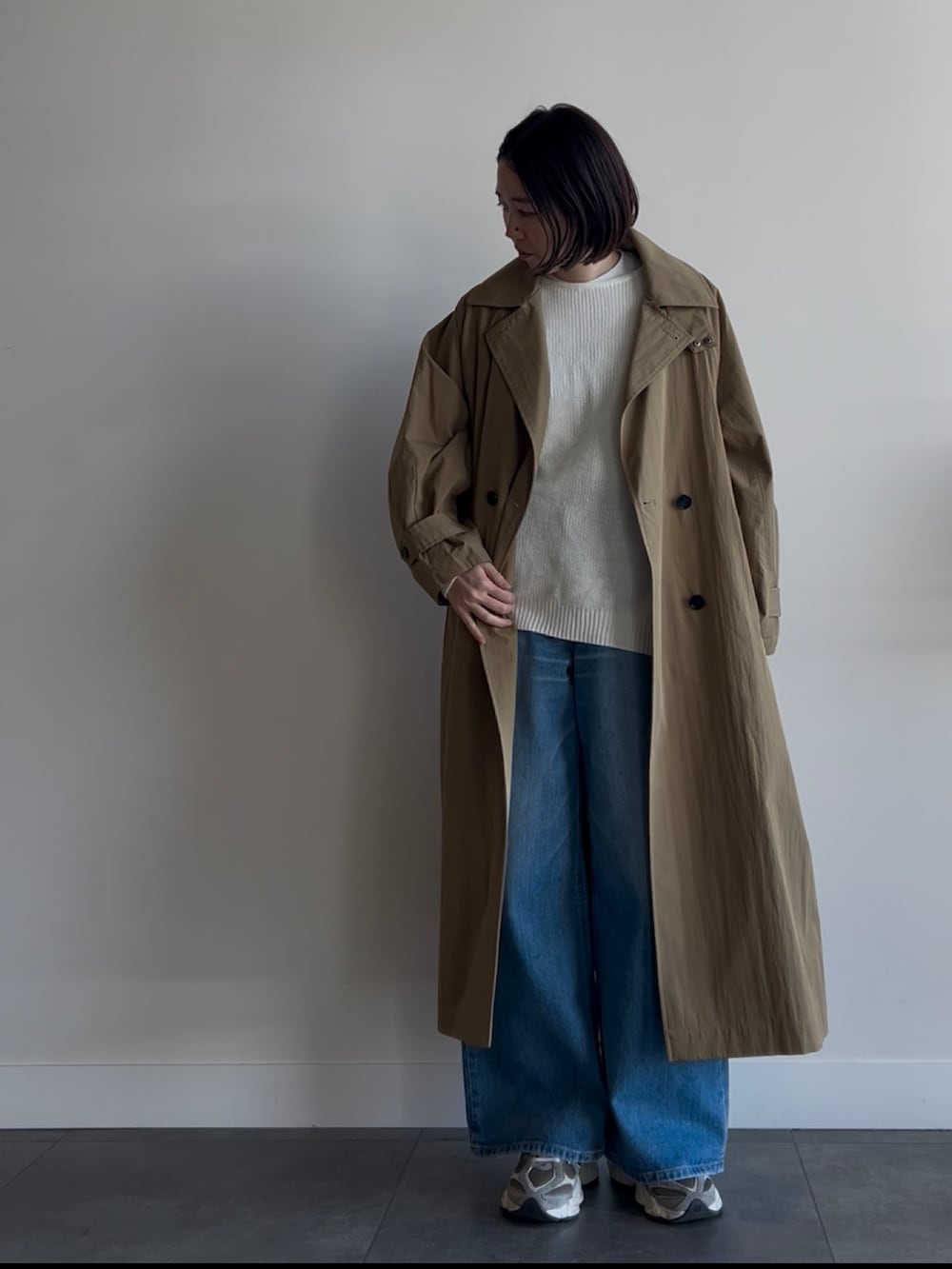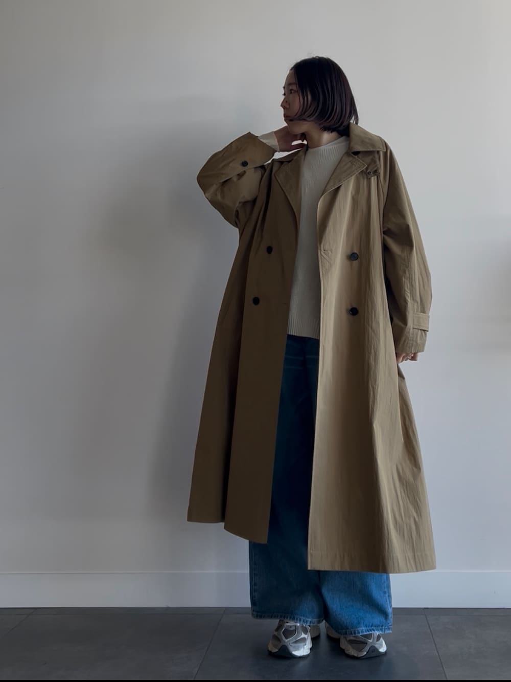 お袖のボリューム感がかわいいコートのご紹介です。ベージュのコートは定番アイテムですが、今年らしいシルエットで新鮮な印象です。
