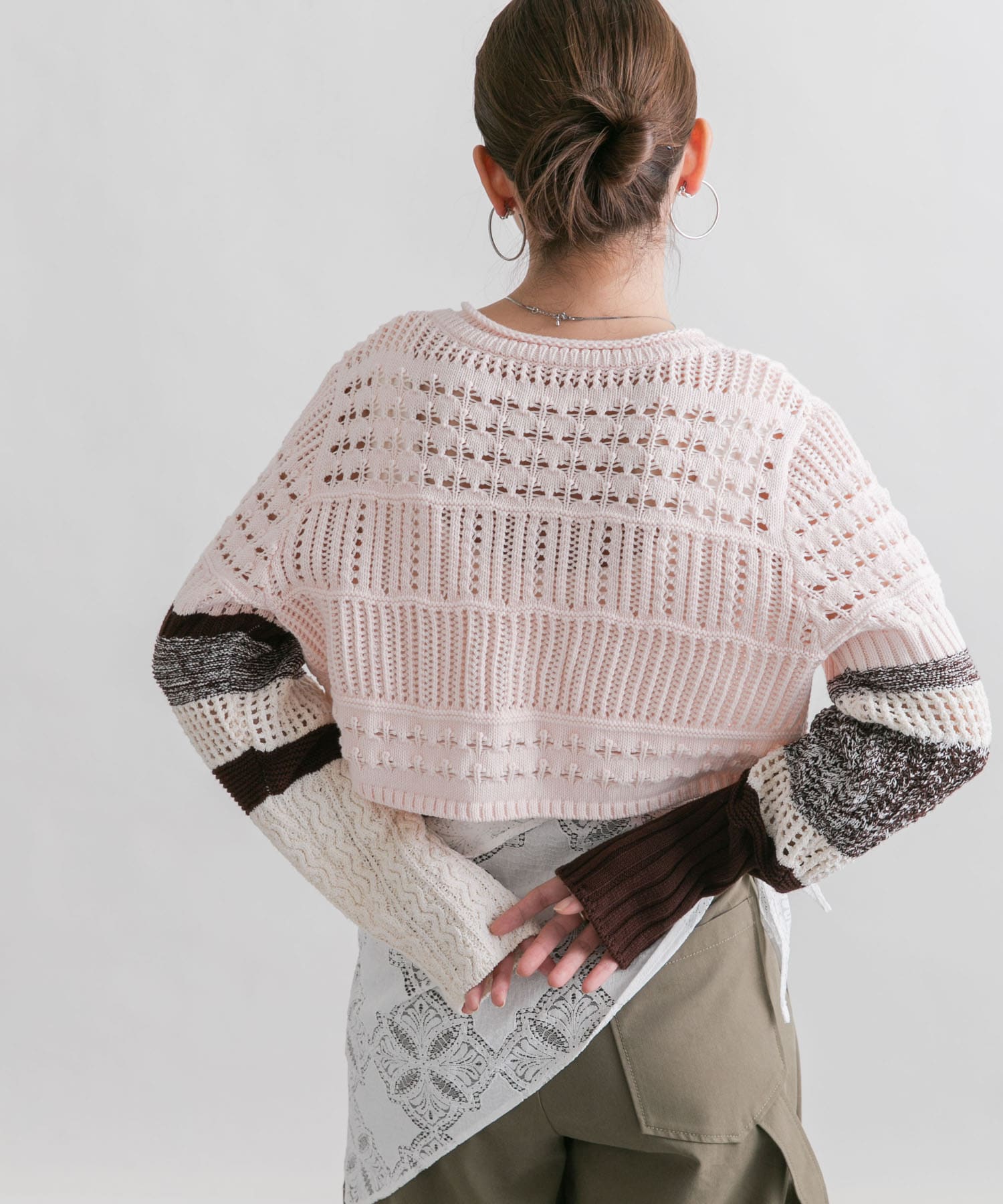 パッチワークカーディガンは配色が可愛くコンパクトなのでワンピース・ハイウエストアイテム・スカートにも相性◉