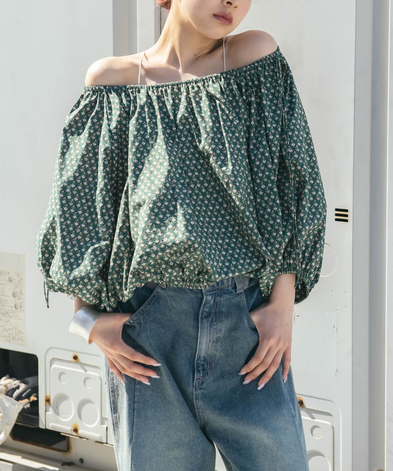 ブラウスはスリットスリーブがポイントで花柄もポイントになり可愛いです◉