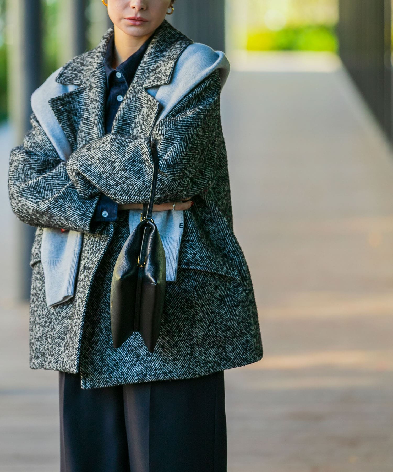 中物に厚手なニットを合わせても嵩張らず着用が出来るのでオススメです‼︎