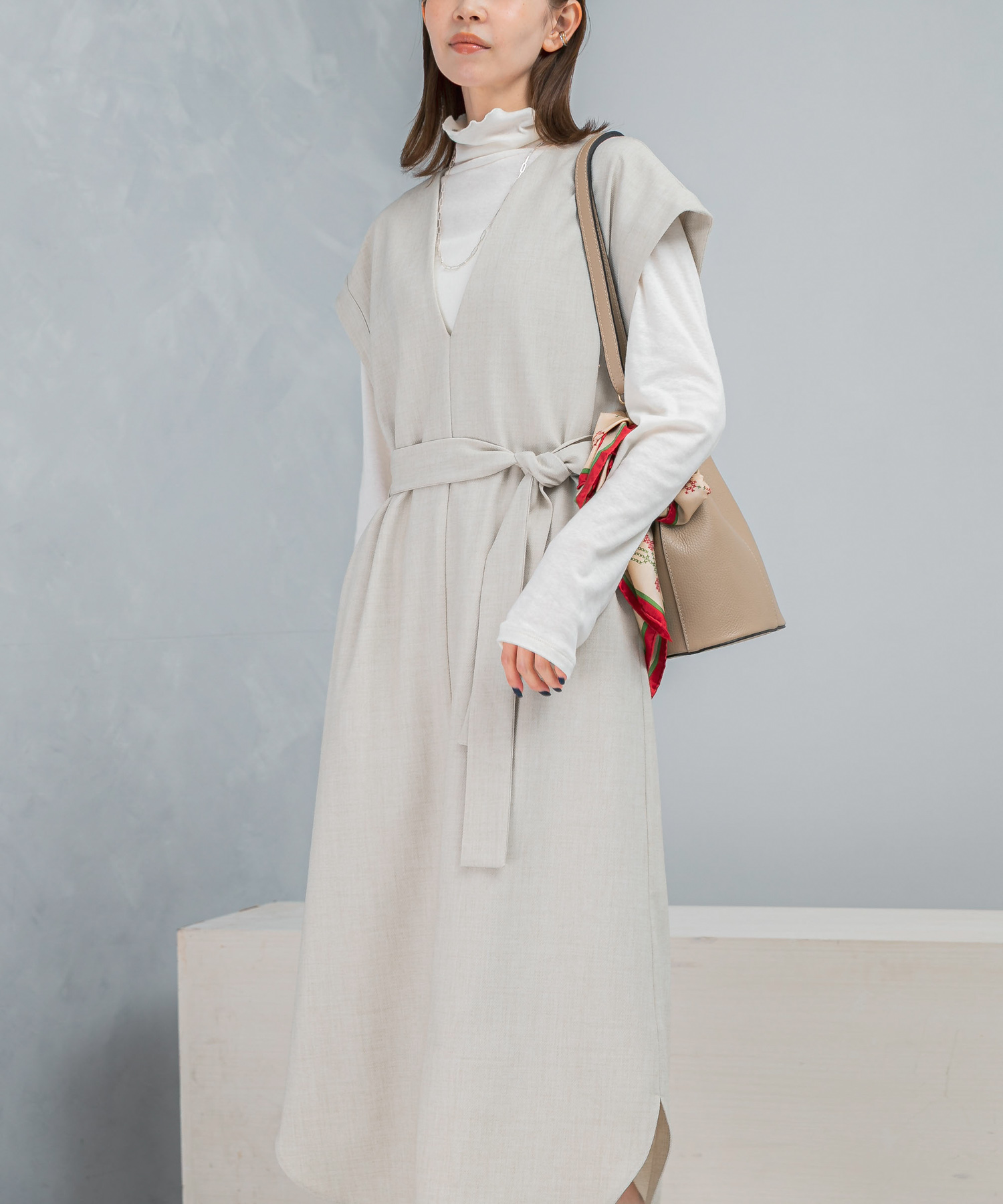 ワンピースをジレ風にし、2WAYブラウスをポイントにしました‼︎