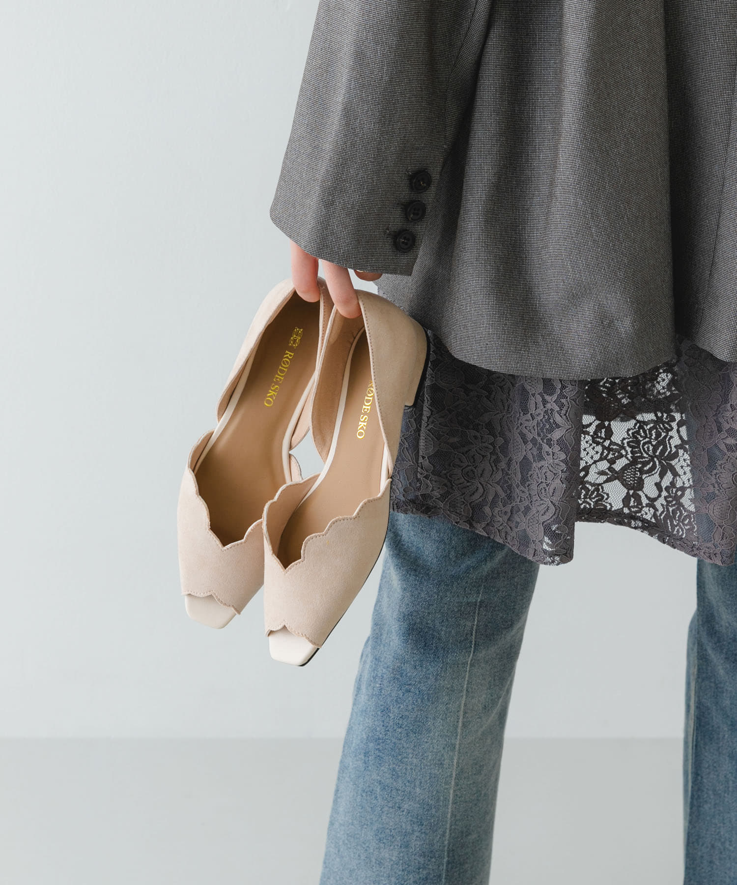 RODE SKOピープトゥスカラップセパレートサンダル- 着用カラー: