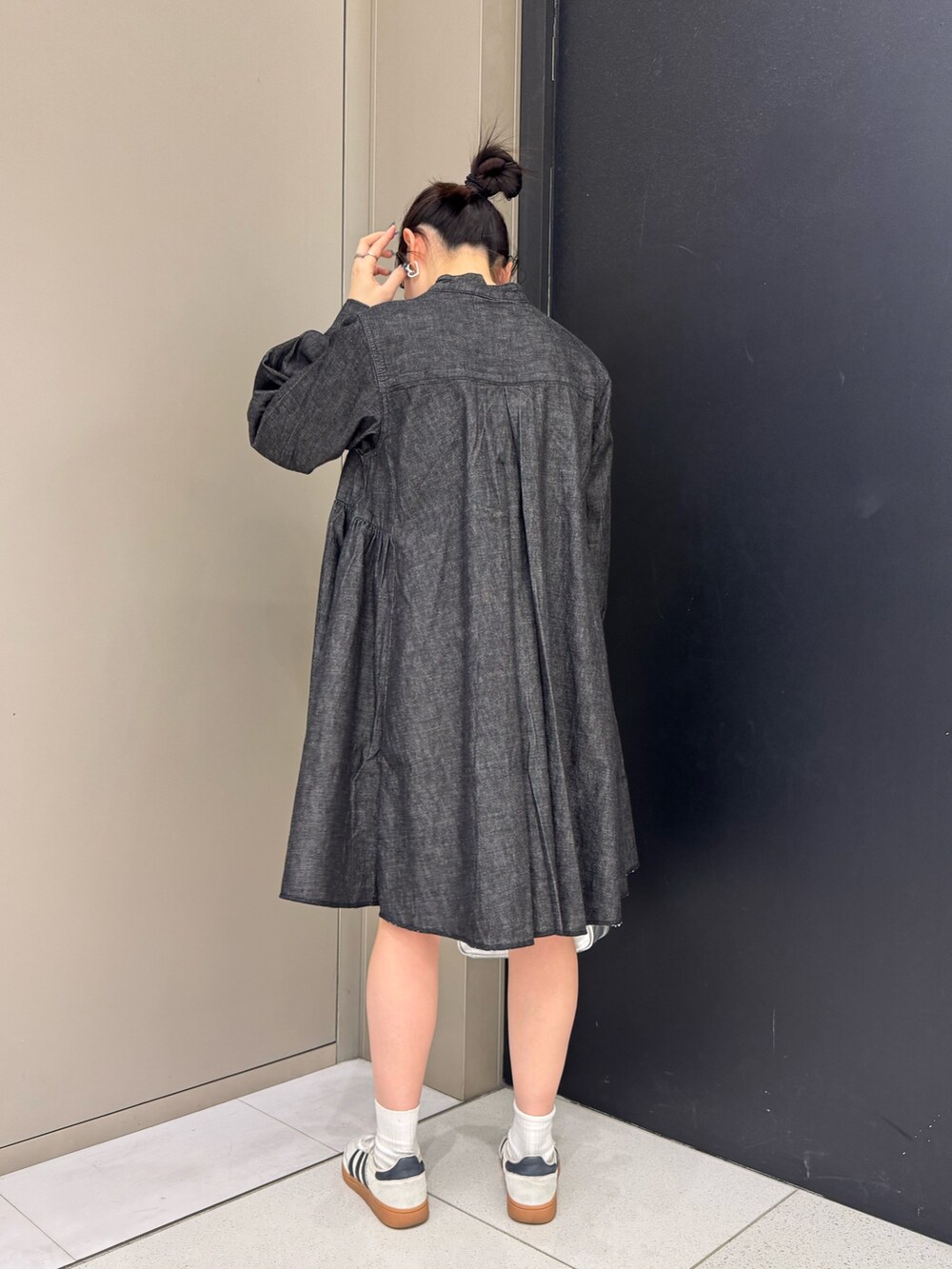 ワンピースとしてだけでなく、下に同じカラーのデニムを合わせても、上に羽織ってアウター風にしても、様々な着方で楽しめるアイテムになっていますよ!
