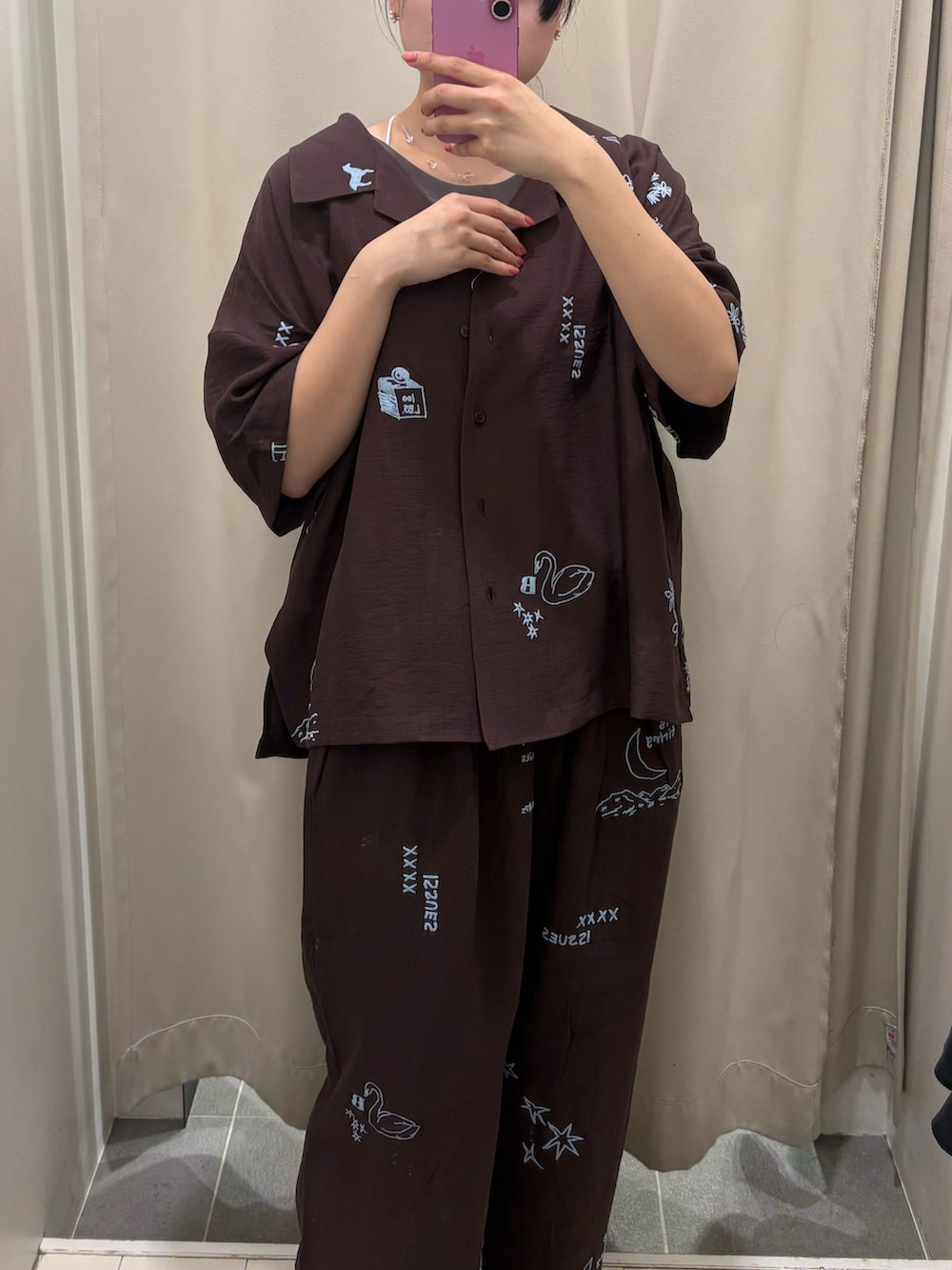 ブラウンにブルーのTATTOデザインが可愛いセットアップです🤎🩵