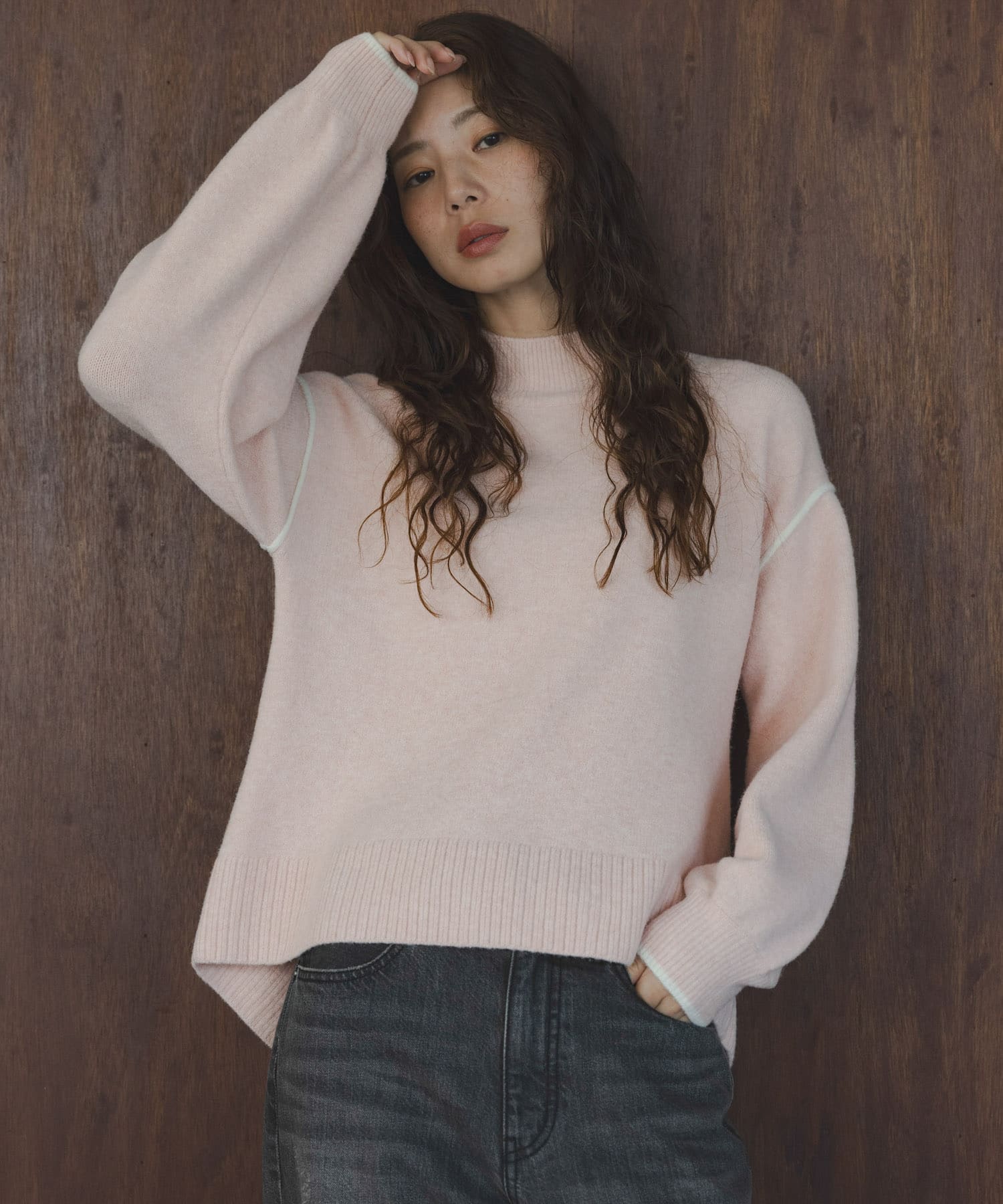 Sonny Labelバックラウンドカラーシームニットプルオーバー- 着用カラー:
