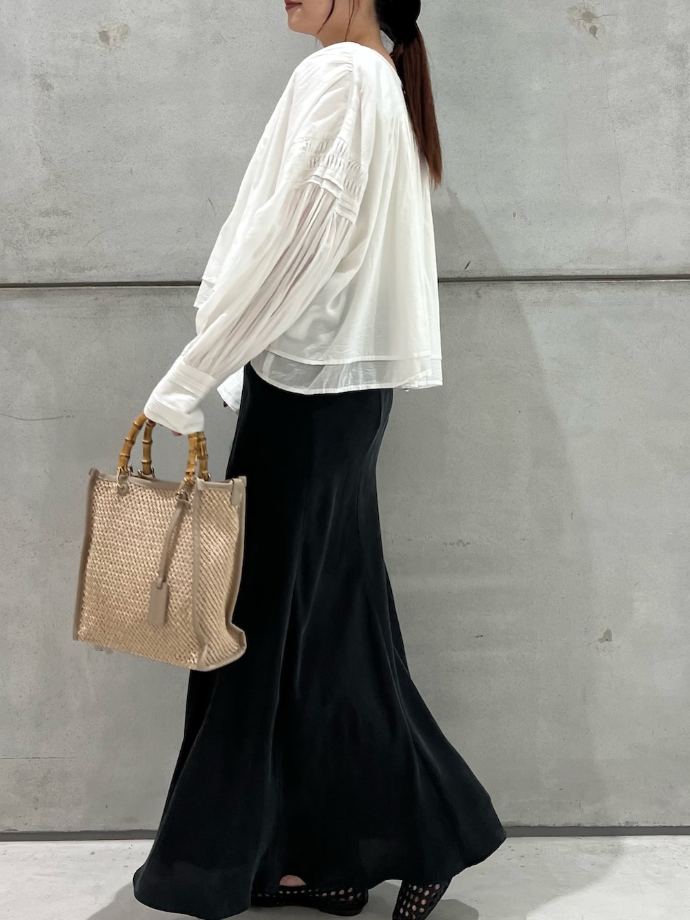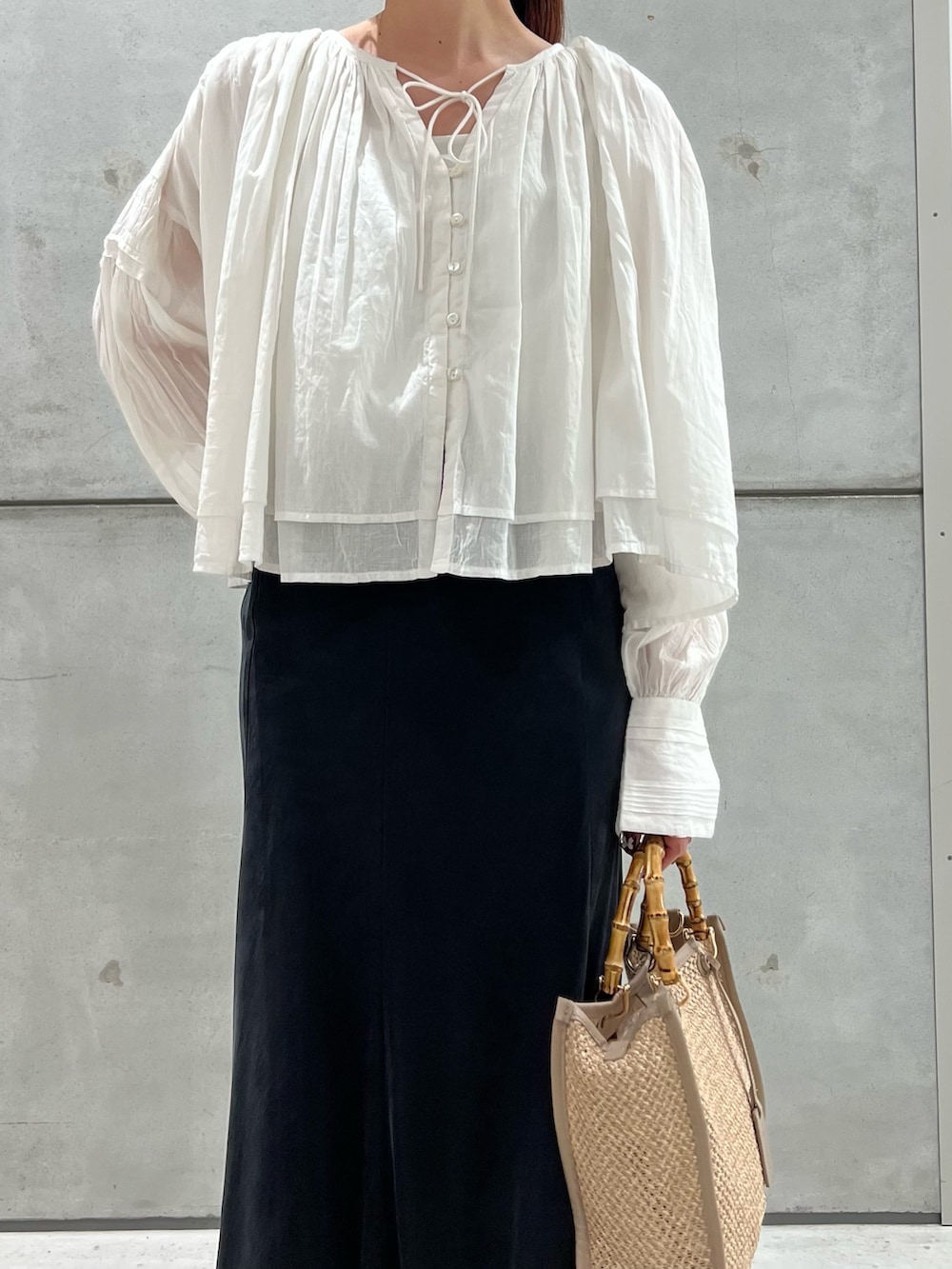1つ前の投稿にて紹介したブラウスのノーカラータイプ!