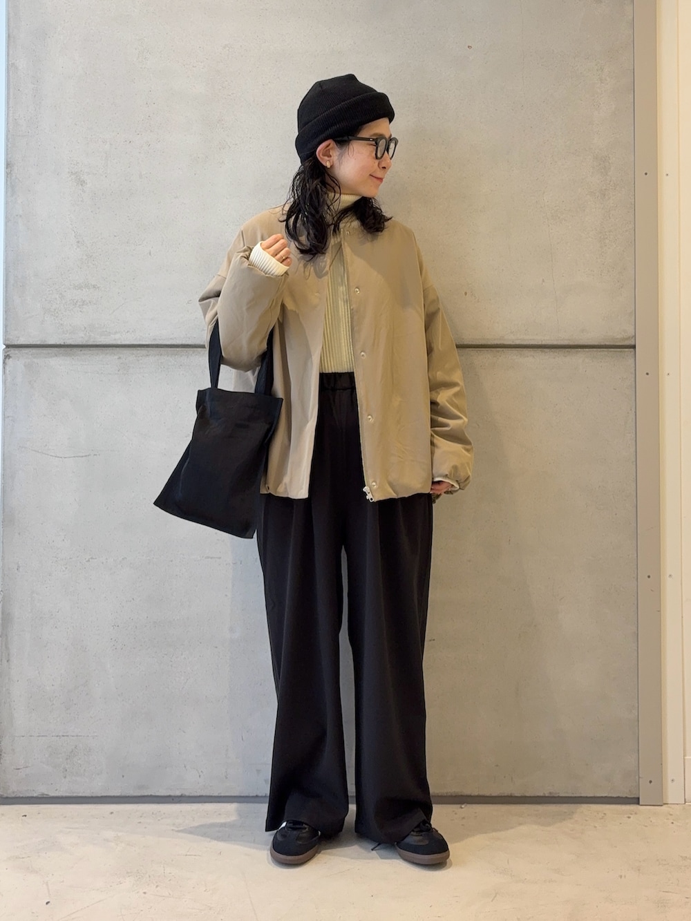 スウェットなど厚みのあるトップスの上にも羽織れます🙌🏻