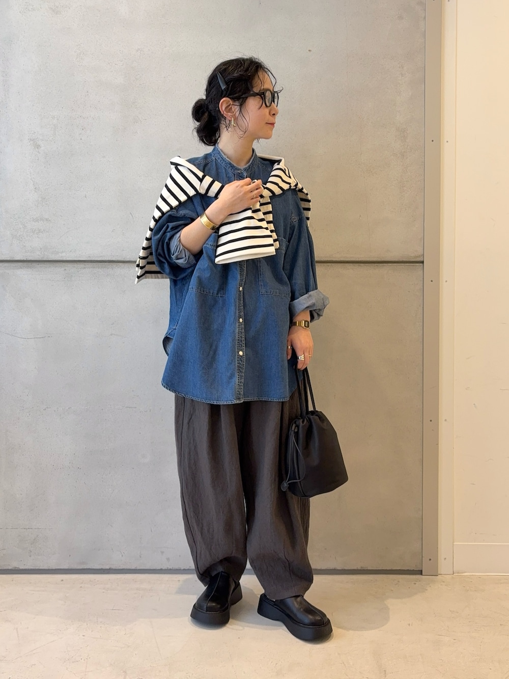▶︎DOORS デニムバンドカラーシャツ