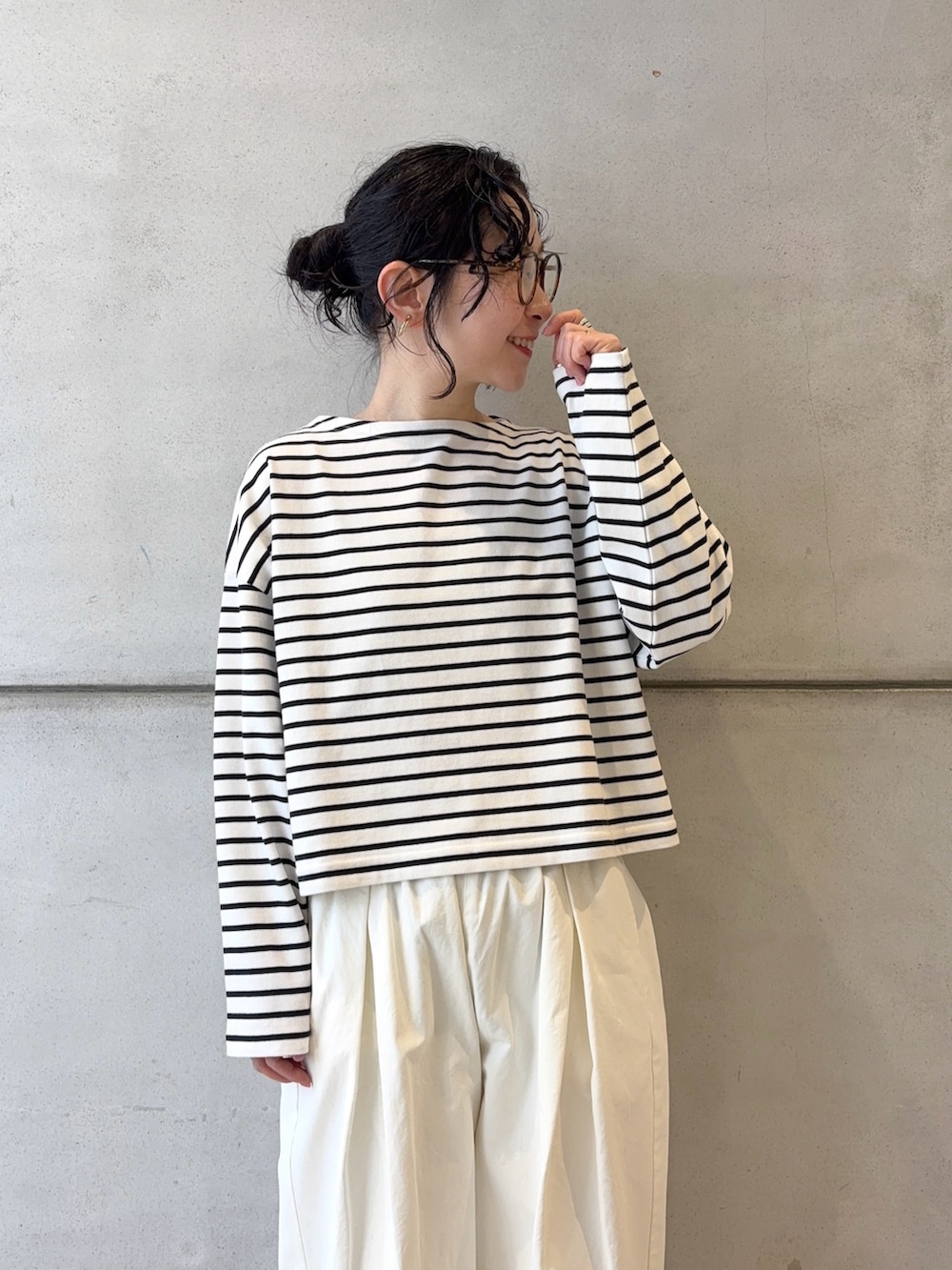 DOORSFORK&SPOON クロップドボートネックボーダー- 着用カラー: