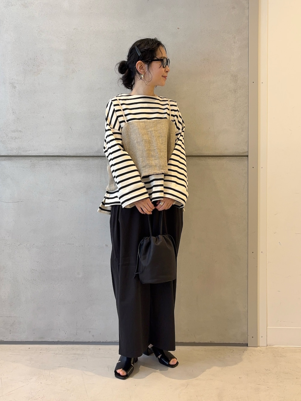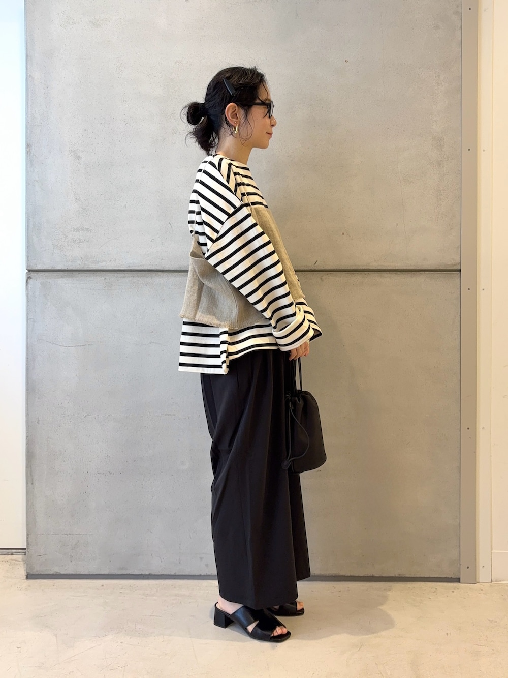 スッキリとした印象でワイドシルエットでも