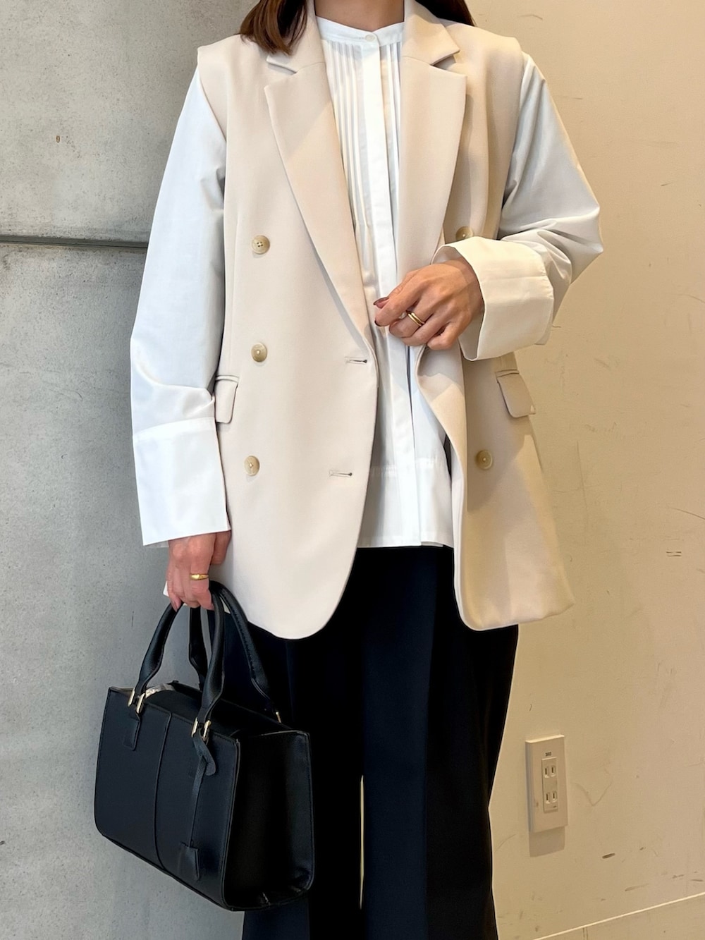 ブラウスはデザイン性があるので、ジレを脱いだときでもシンプルになりすぎずスタイリングのポイントになってくれます!